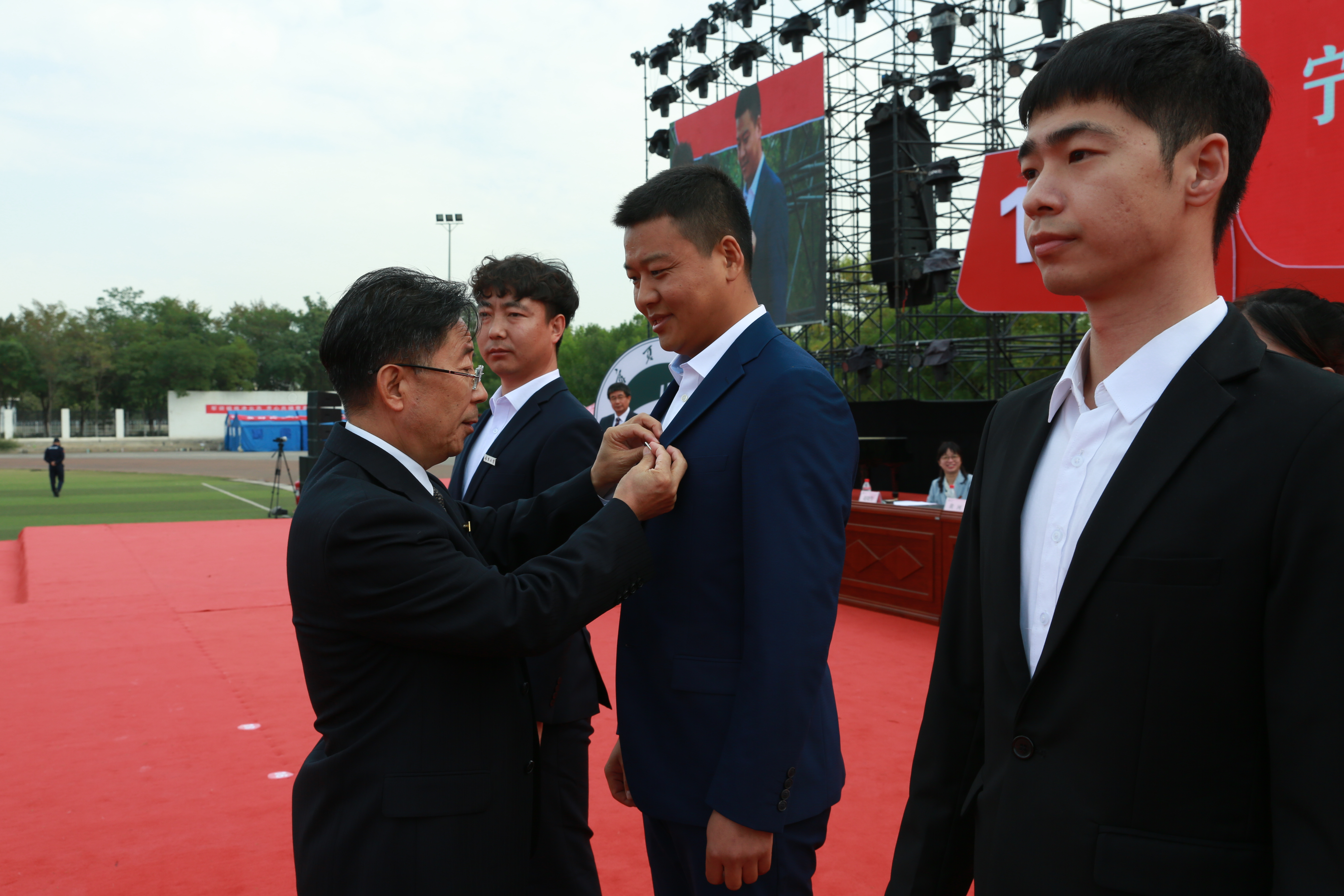 校领导李星和彭志科还为新生代表、新入职教师代表佩戴校徽。