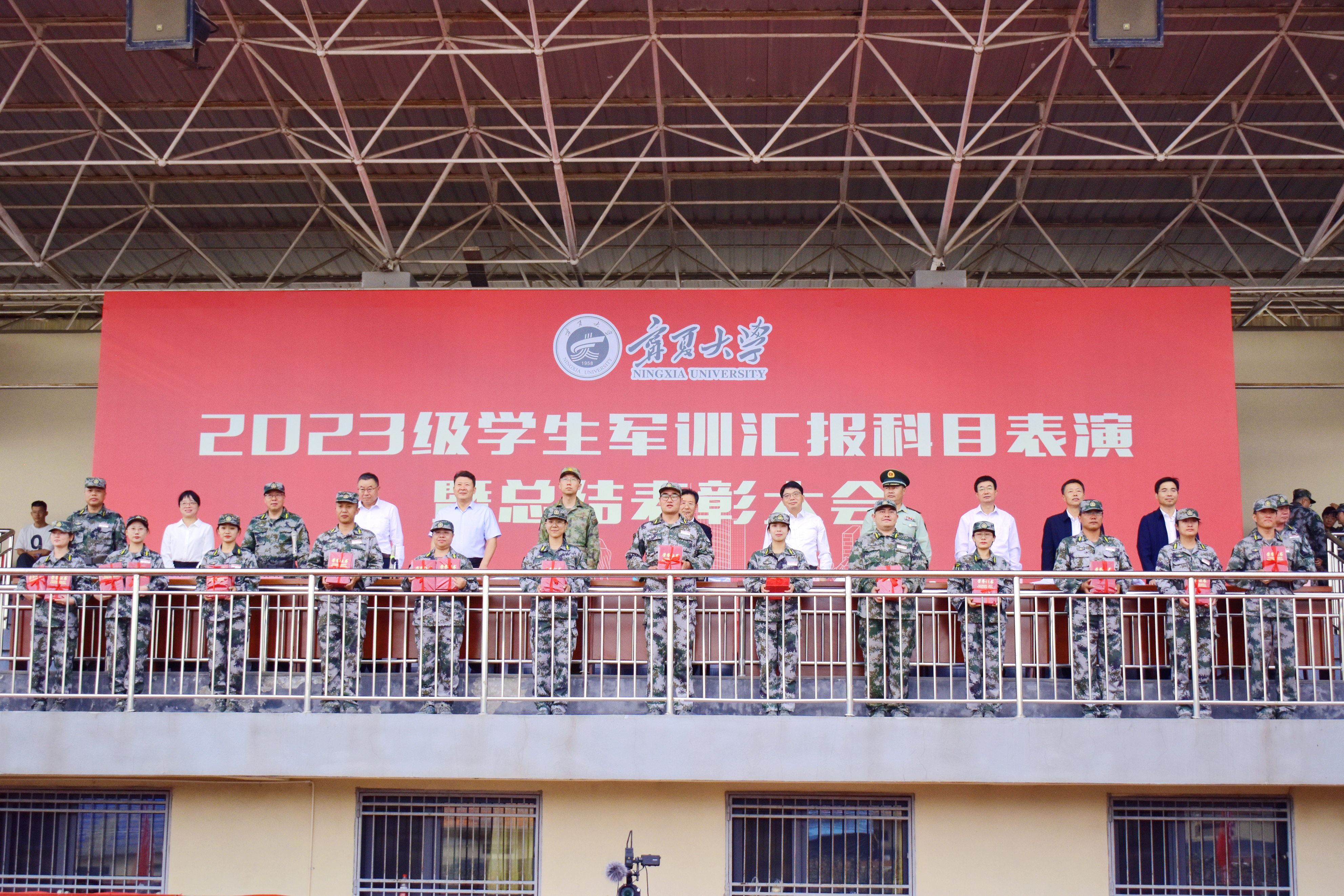 校党委常委、副校长黄河在军训总结中代表永利集团304官网向帮助指导永利军训工作的宁夏军区、自治区教育厅、武警宁夏总队表示衷心感谢,向承担永利2023级学生军训任务的武警宁夏总队银川支队的官兵致以崇高敬意,向参与组织这次军训工作的领导和老师表示亲切问候。他表示,军训时间虽然短暂,但却为刚刚跨入大学校门的新同学上了有深远意义的第一课。此次军训汇报科目表演中步伐整齐、口号嘹亮、精神焕发、歌声飞扬,充分展现了当代永利学子意气风发、昂扬向上的精神风貌和时代风采,也为永利集团304官网建校65周年校庆活动增添了浓墨重彩的一笔。他希望同学们在今后的学习生活中继续巩固军训成果,敢于战胜一切困难,勤奋学习,苦练本领,践行“强国有我”的青春誓言,秉承“尚德、勤学、求是、创新”的校训,弘扬“不怕困难,不畏风寒;根深叶茂,本固枝荣”的“沙枣树精神”,发奋学习,开拓创新,努力成为堪当民族复兴大任的时代新人,谱写绚丽的青春华章。