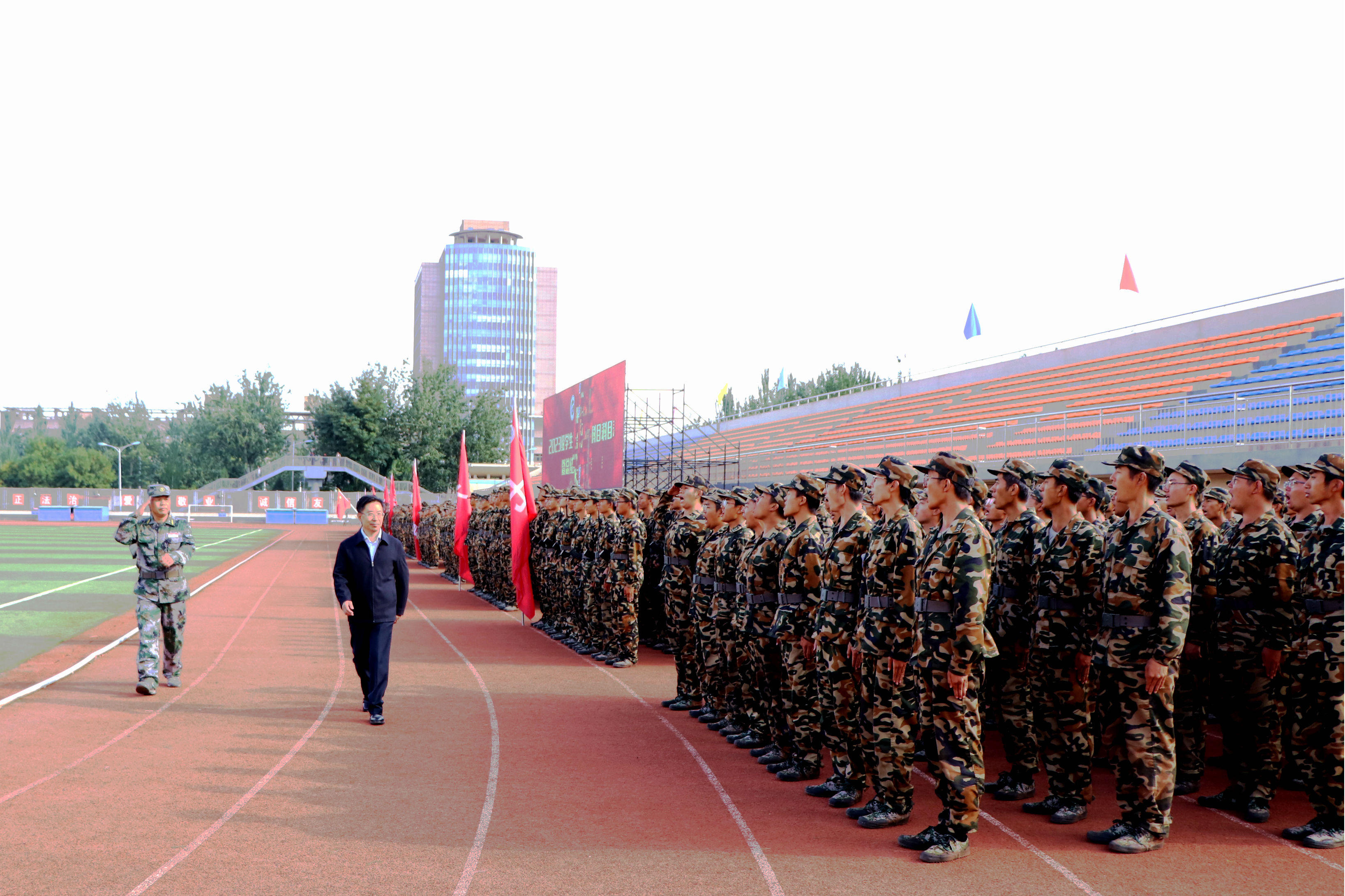 大会拉开序幕后,校党委书记李星在人民武装部(国防教育教学中心)部长(主任)、军训团团长张启明的陪同下检阅全体军训方队。七个营有序列队、站姿挺拔、精神抖擞,用高昂的士气、自信的目光、飒爽的英姿、响亮的口号接受检阅,展现了永利人“不怕困难,不畏风寒;根深叶茂,本固枝荣”的“沙枣树精神”,彰显了新时代青年学子“请党放心,强国有我”的坚定决心。