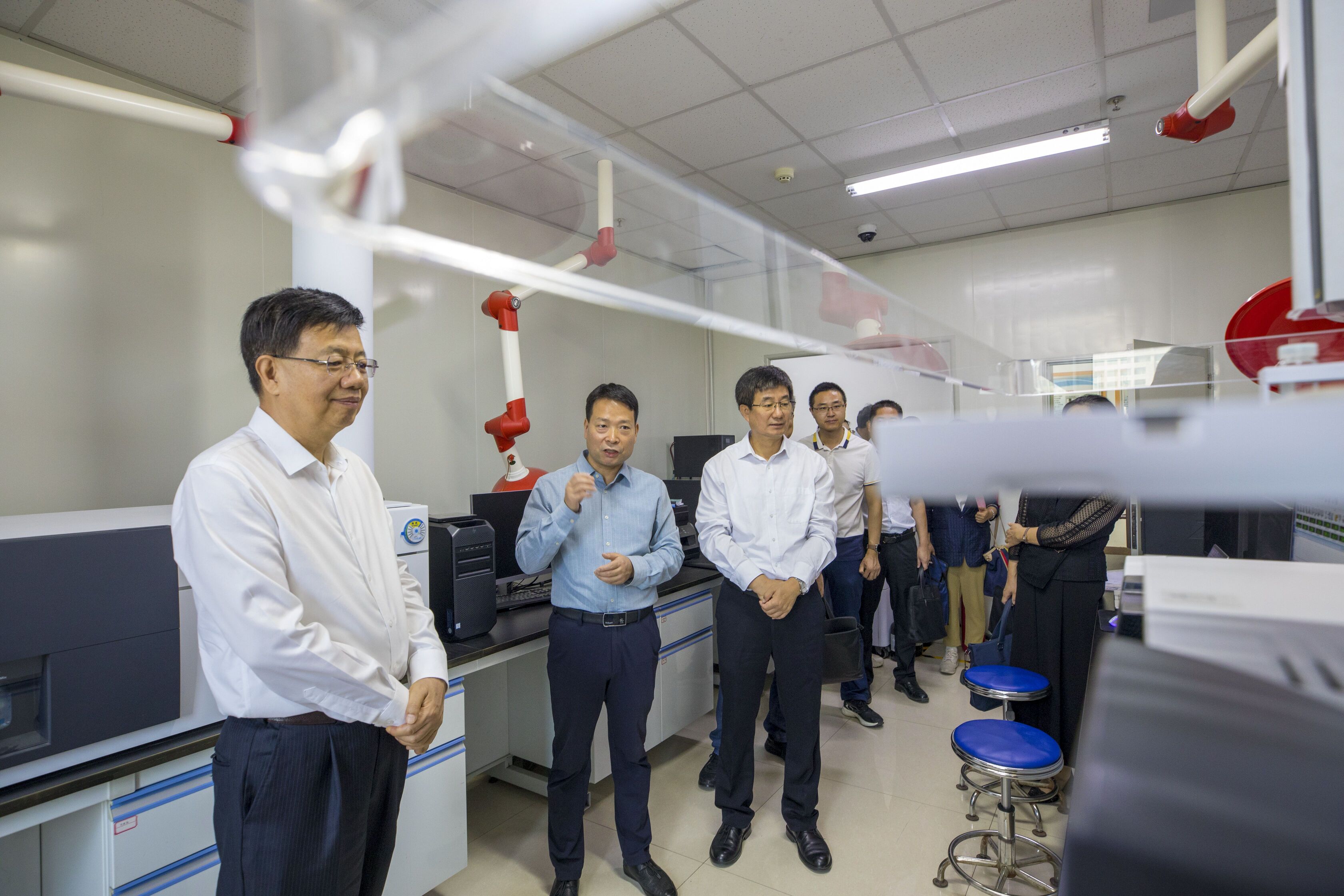 座谈会前,郑震一行参观了葡萄与葡萄酒教育部工程研究中心,并在现场听取了相关工作的汇报。