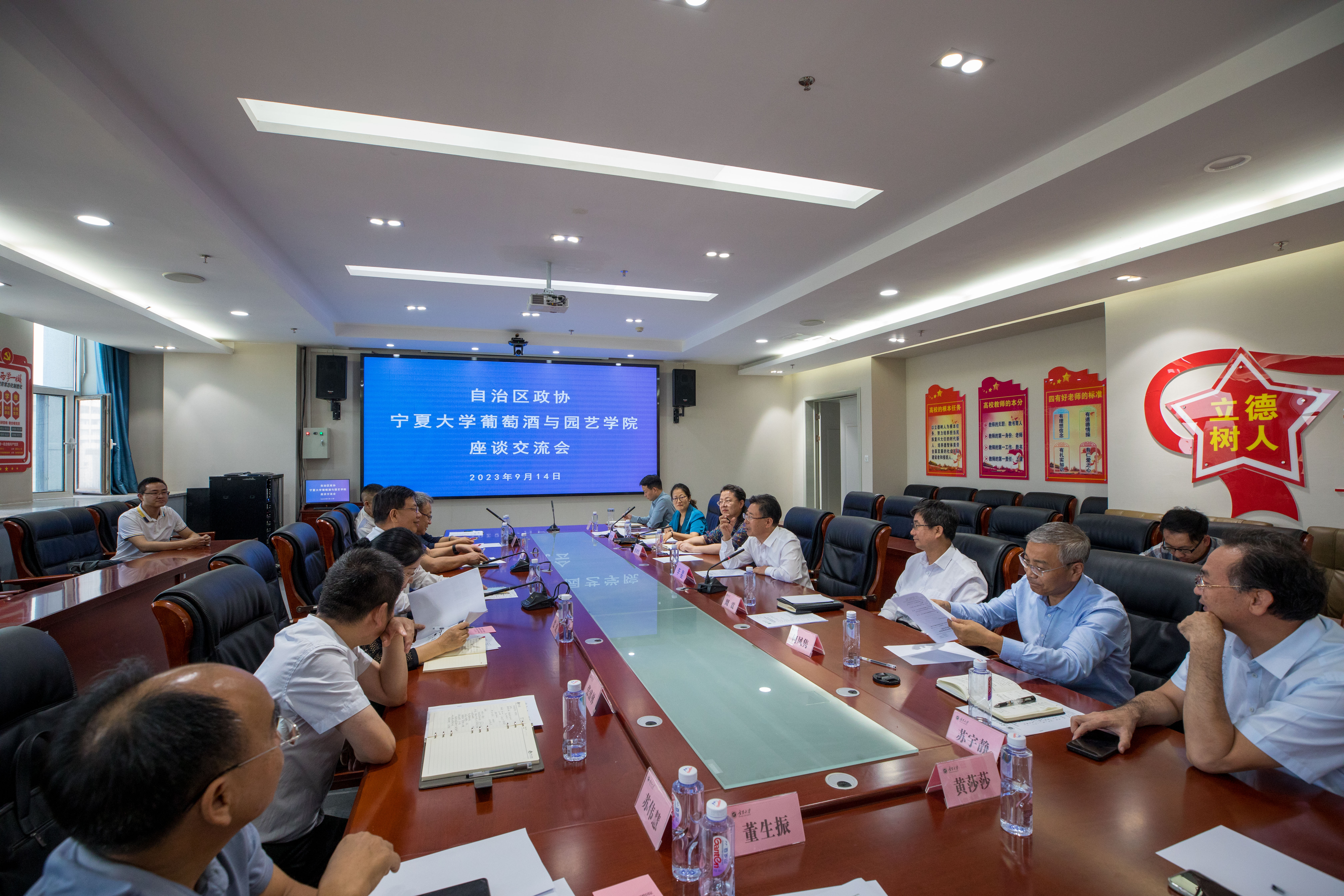 座谈会上,葡萄酒与园艺学院负责人汇报了葡萄与葡萄酒工程专业建设情况和人才培养情况。与会人员围绕宁夏葡萄酒产业高质量发展,在产业人才培养、行业标准制定等方面展开热烈的交流。