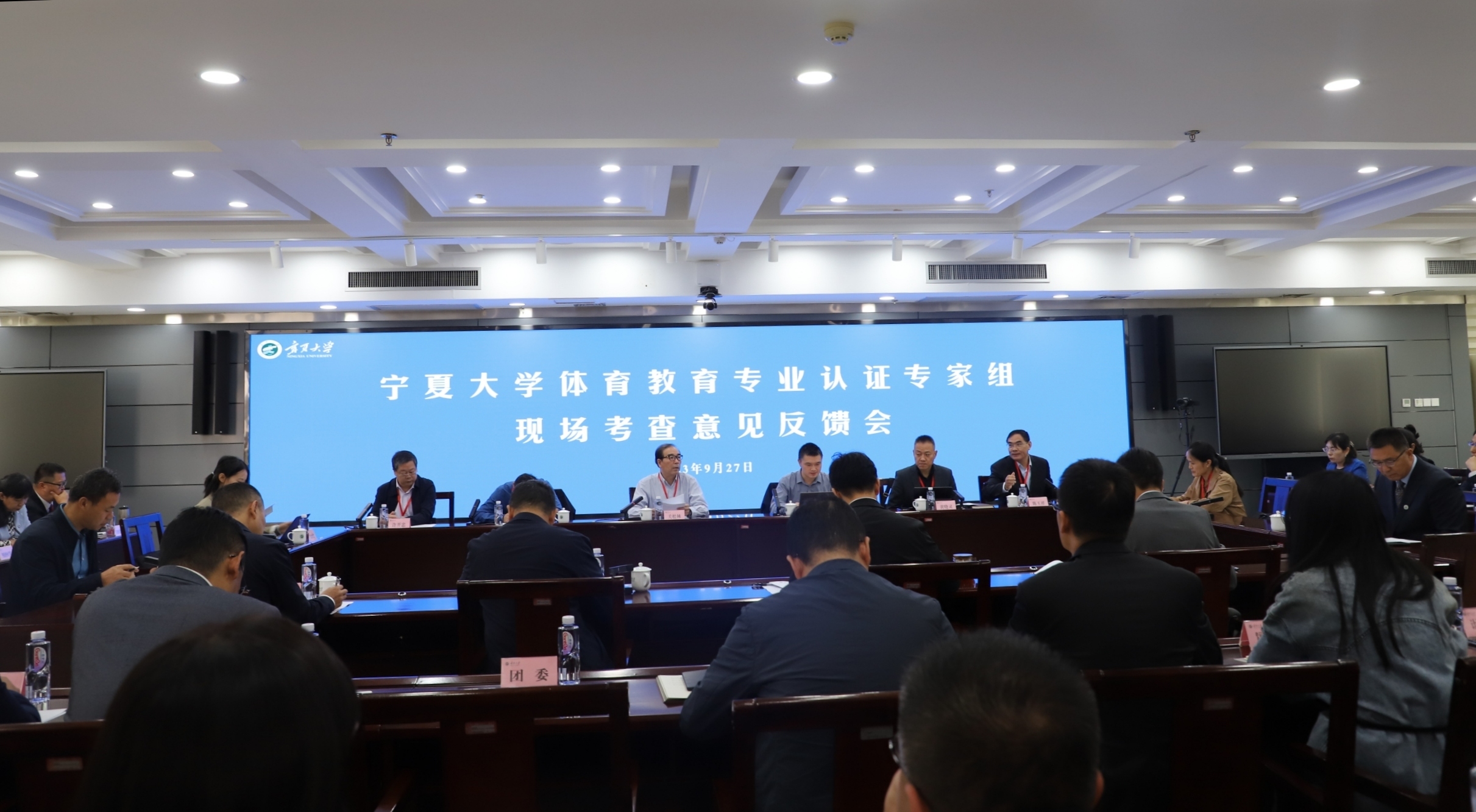 【永利集团304官网新闻中心讯 王文娣/文、图】9月27日,体育教育专业认证专家组现场考查意见反馈会在德勤楼六楼会议室举行。认证专业专家组全体成员,自治区教育厅教师工作处处长臧育海,重庆市教育评估院高等教育评估所副所长田腾飞,校党委副书记、校长彭志科,党委常委、副校长李建设、黄河,党委常委、宣传部部长高永兴出席会议。认证专家组组长、沈阳师范大学原副校长关松林教授主持会议。