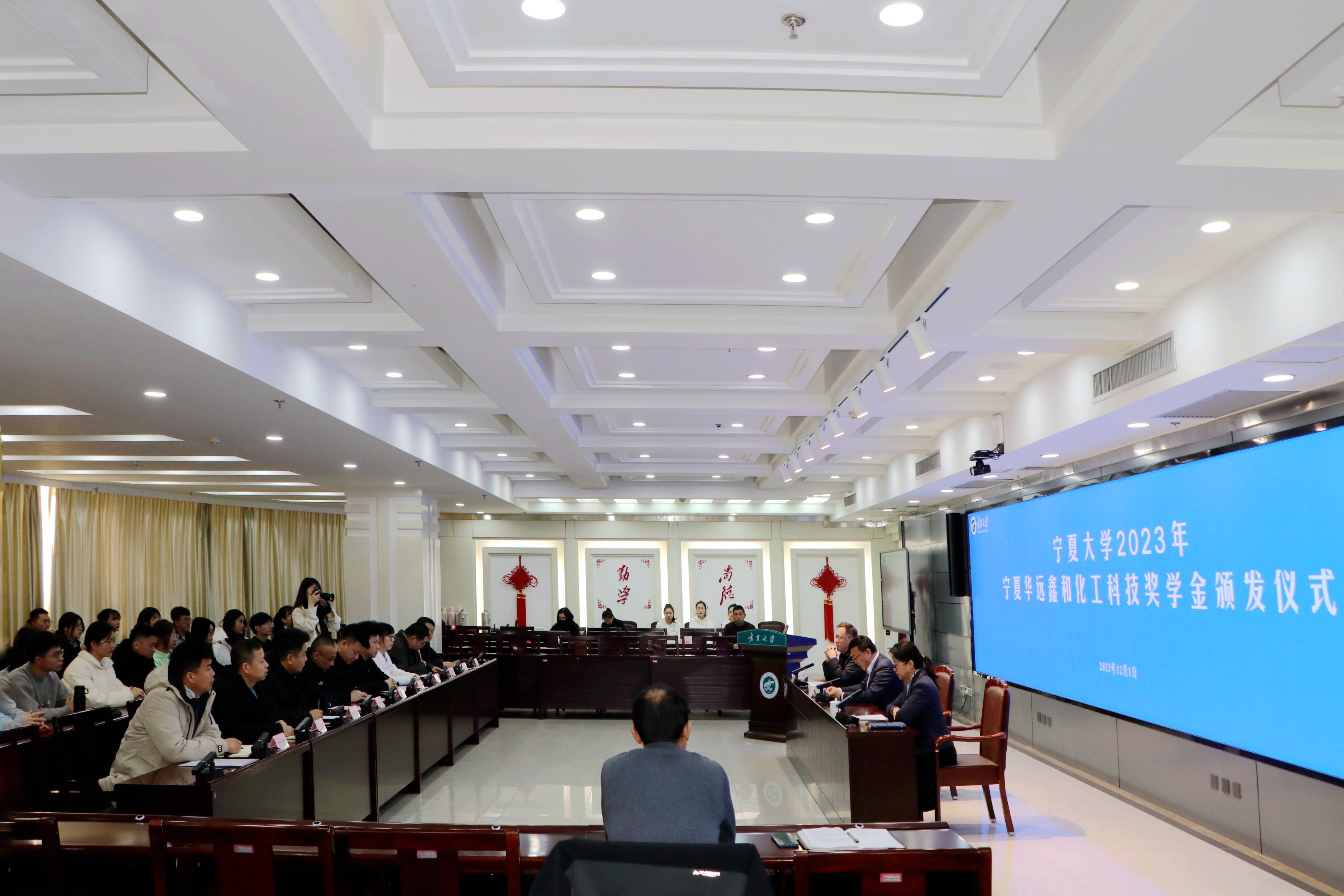 【永利集团304官网新闻中心讯 杨雯/文 张景/图】12月1日,永利举行永利集团304官网2023年宁夏华远鑫和化工科技奖学金颁发仪式,校党委常委、副校长黄河,副校长赵晓佳参加发放仪式,校友会会长、教育发展基金会理事长谢应忠主持会议。