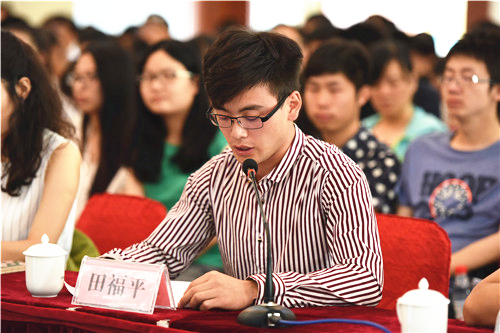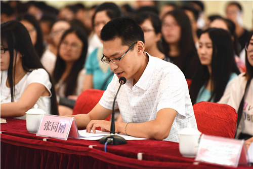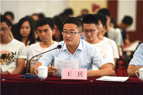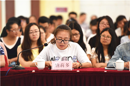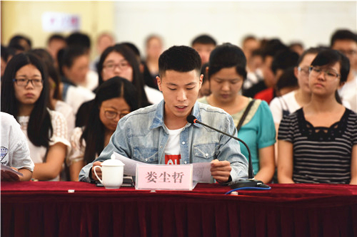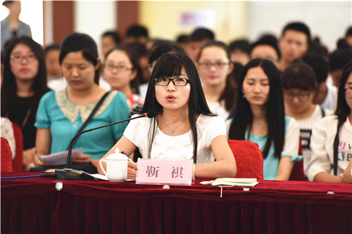 报告会前,农学院2015级动物生产系统工程专业张同刚、人文学院2014级比较文学与世界文学专业靳祺、音乐学院2015级少数民族艺术专业马思琪、信息工程学院2013级计算机科学与技术专业娄尘哲、土木与水利工程学院2013级土木工程专业田福平、经济管理学院2013级工商管理专业纳莉多、葡萄酒学院学生工作办公室主任王兵、化学化工学院教师吴晓红等8位师生代表结合各自的工作和学习的实际,表达了为伟大中国梦的实现贡献青春和力量的决心。