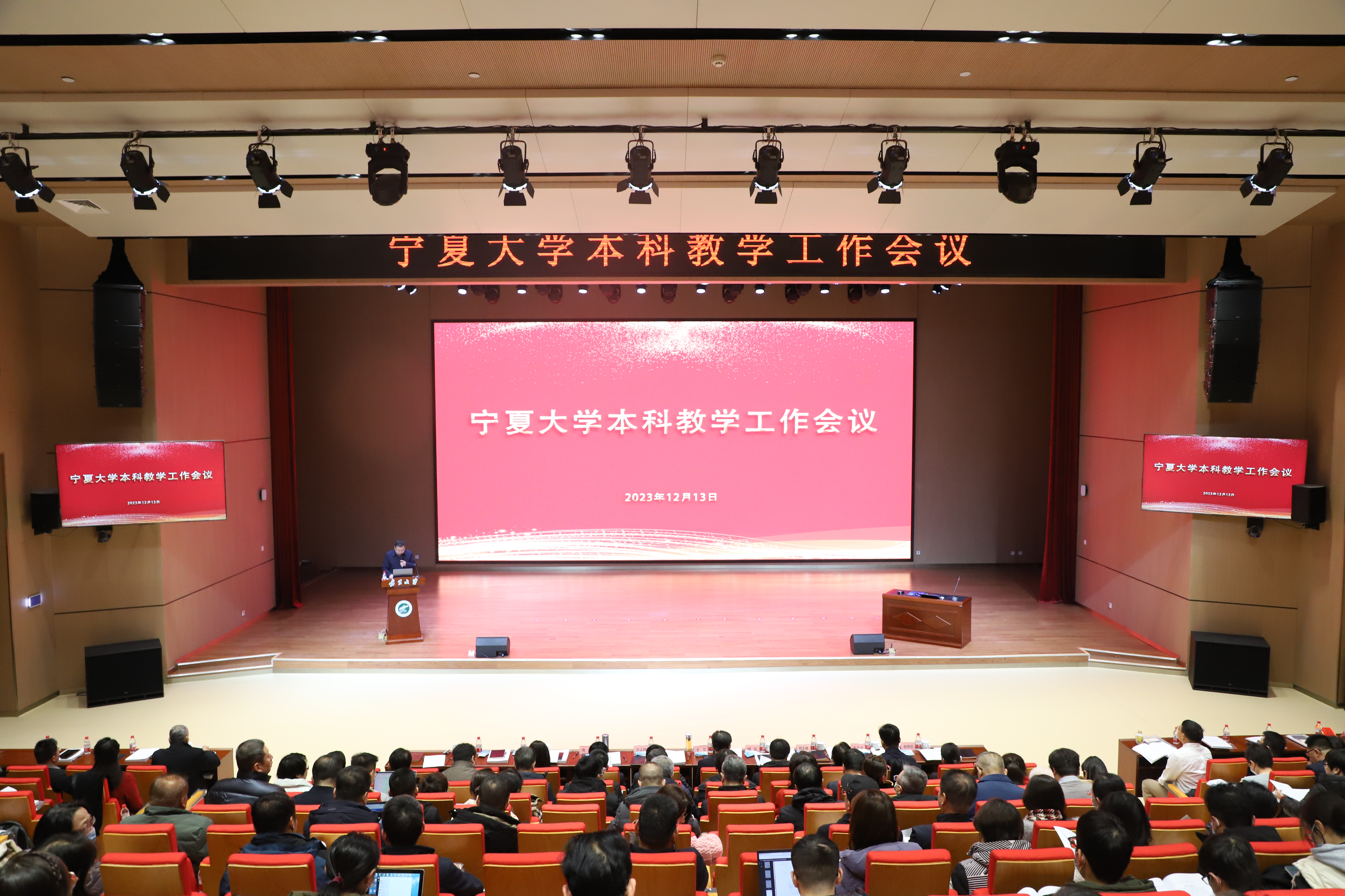 【永利集团304官网新闻中心讯 王文娣/文 姬晓姗 王文娣 学生记者:陈帅仰 萧开文/图】为学习贯彻落实习近平新时代中国特色社会主义思想和党的二十大精神,总结回顾过去三年的教育教学工作成绩,表彰教育教学类项目和奖项的获奖个人和团体,进一步明确本科教育工作目标任务,为学校本科教学的新发展、新跨越开好局、起好步,12月13日,永利集团304官网本科教学工作会议在贺兰山校区笃行楼报告厅召开。全体校领导参加会议,校党委常委、副校长李建设主持会议。