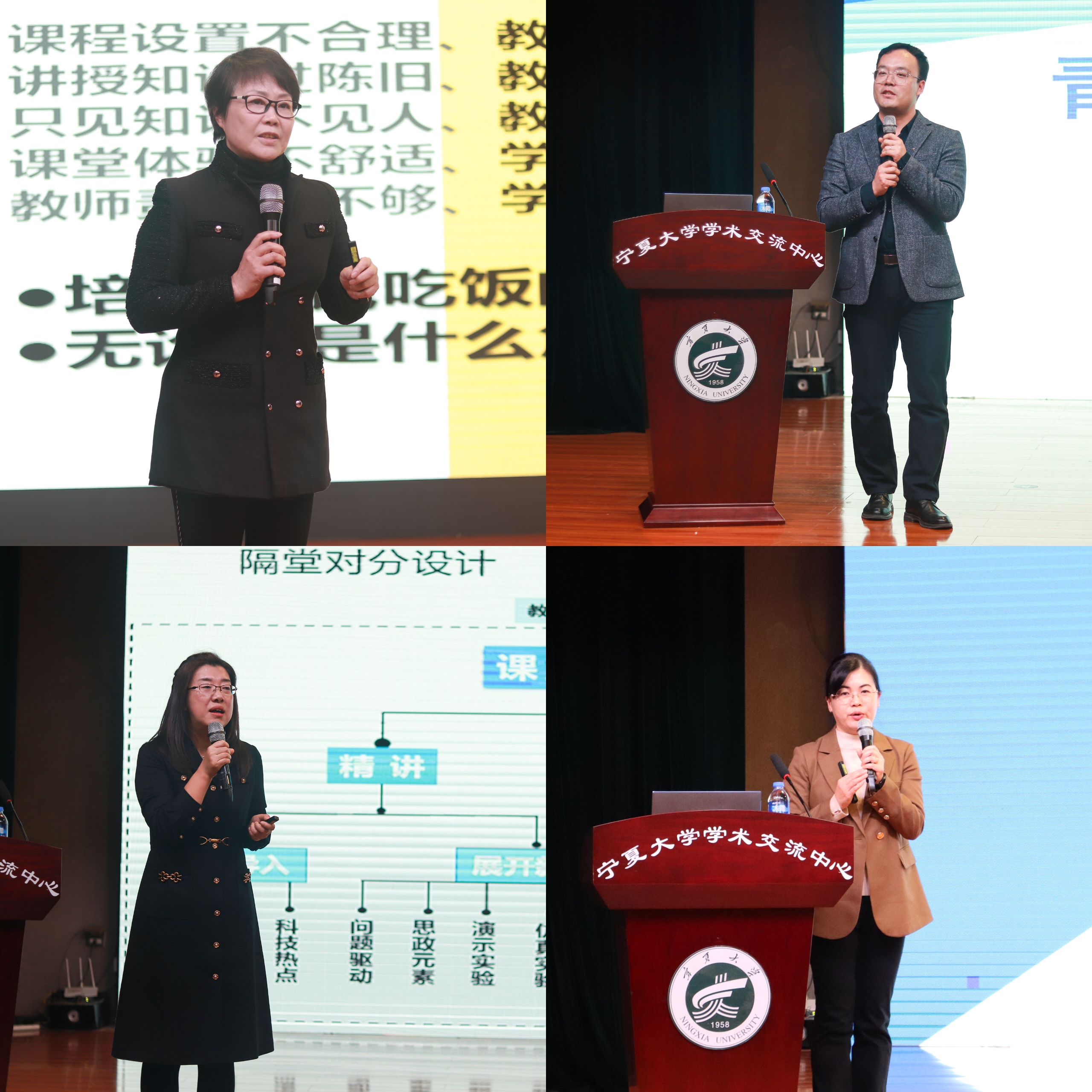 在下午举办的教师教学论坛上,校级教学督导赵智宏、物理学院教授马玲、马克思主义学院党总支副书记张艳、经济管理学院教师许昊分别就如何在教学活动中做到“乐教、乐知、乐行”,构建多元融合的对分模式、打造平权赋能的高效课堂,把握课堂教学的“神”与“形”等内容作了教学经验分享报告。