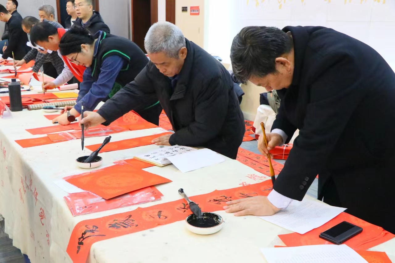 活动过程中,宋琰、陈晓军、张涵、席恒、范彦奎、曹强、马树华、邵金龙、刘富祥、王宽良等十多位书法家和书法爱好者现场挥毫泼墨,为职工群众开展了写春联、送万福活动。与此同时,宁夏演艺集团歌舞剧院为现场观众带来了合奏《腾飞吧宁夏川》、女声独唱《人民就是江山》、民族管乐联奏《花儿漫塞上》、男声独唱《最美中国人》等十二个精彩的文艺节目,让活动氛围热烈而温暖。