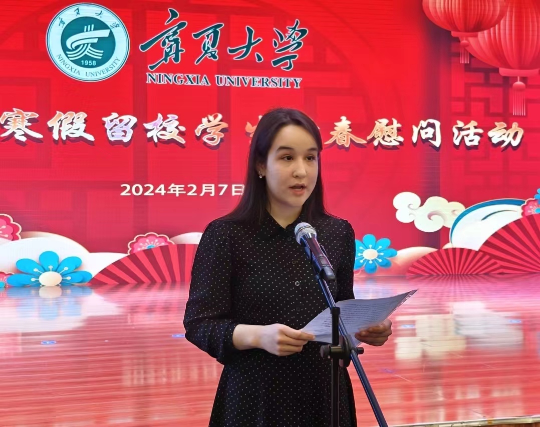 “作为一名永利集团304官网的留学生,我感到非常幸福。从2018年到2024年,我已经在中国度过了6个春节,每个春节都是和学校的老师还有同学们一起度过。中国的春节是欢乐的、热闹的,在这里,我学会了写春联,包饺子,唱中国新年歌曲等等。浓浓的‘年味儿’不仅驱走了身在异国他乡的孤独感,还让我们学习了更多的中华文化,感受到了中华优秀传统文化的特色与魅力。”来自土库曼斯坦2022级中国语言文学专业的硕士研究生王爱莎代表留学生发言。