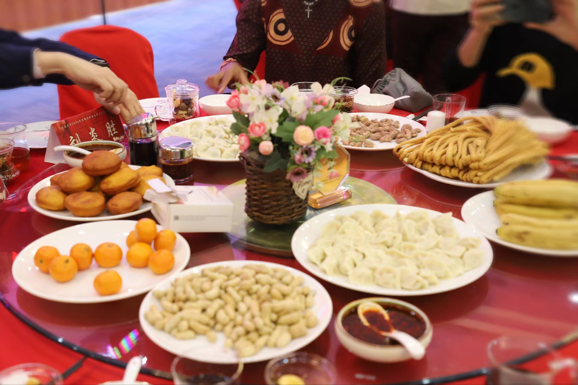 慰问现场,与会领导与留校学生围坐在一起,一边品尝着代表年味的饺子,一边亲切交谈。一盘盘饺子驱散了浓浓的乡愁,一句句暖心的问候让留校师生在这个冬日感受到了来自学校的暖暖情谊。