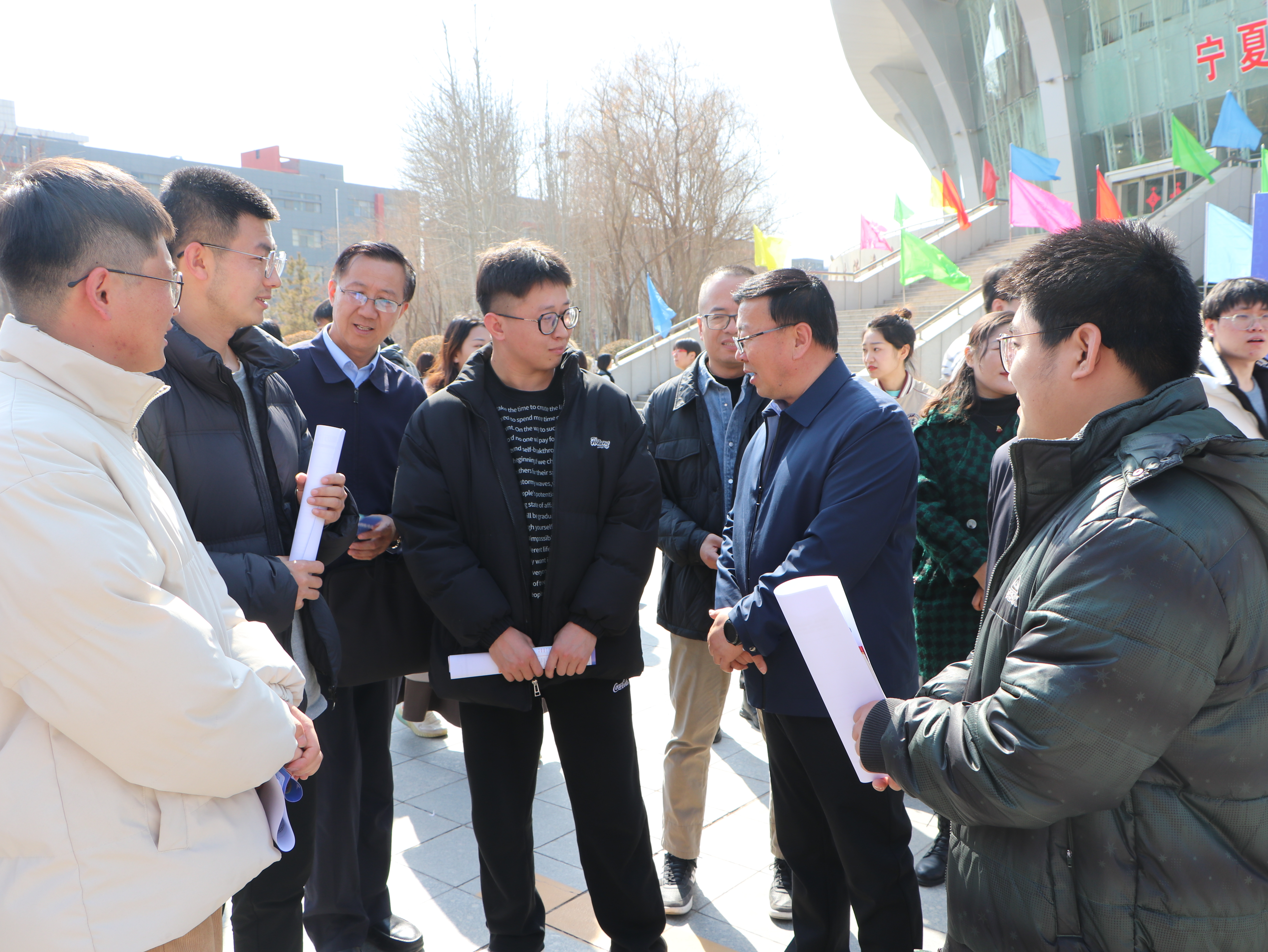 招聘活动采取校园招聘会+网络招聘会+走场巡播+视频面试的方式进行,中国建筑第八工程局有限公司南方分公司、国药控股宁夏有限公司等80家企业带来2500余个招聘岗位。校党委常委、副校长黄河来到招聘会现场,详细了解学生考研考公及参军报名情况,同学生仔细交谈,了解他们的专业及意向单位,并鼓励同学们好好准备。在同企业深入交谈时,黄河仔细询问了解了招聘条件、岗位类别、工作环境、薪资待遇等情况。