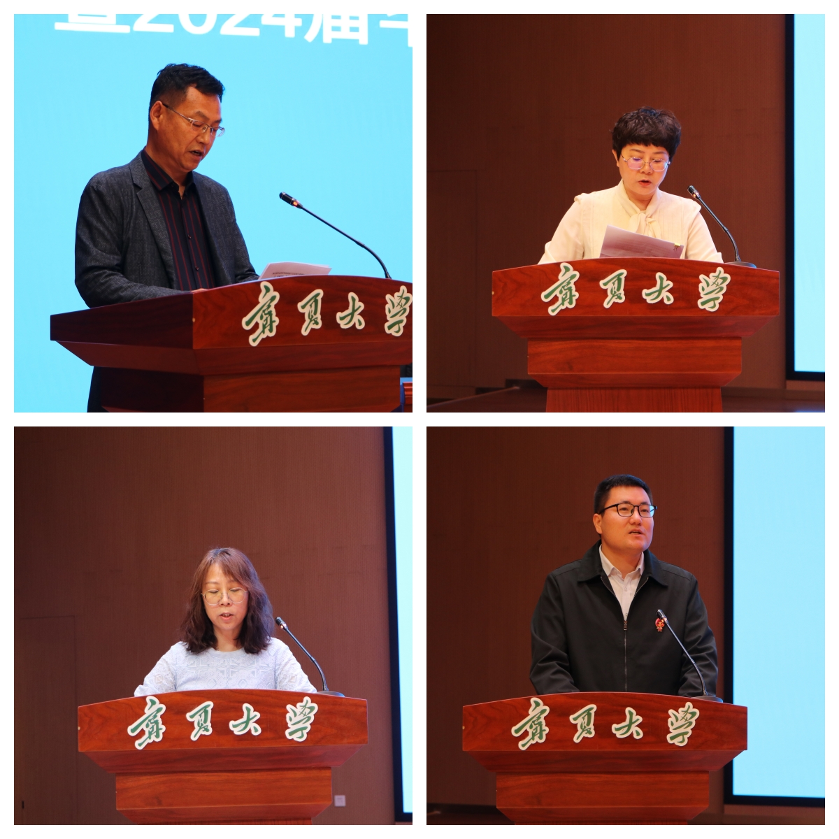 食品科学与工程学院党总支副书记李文华、尚德书院党委书记潘瑞,信息工程学院副院长杜方、勤学书院专职辅导员艾萨·阿尤普分别代表就业工作先进集体,就业工作先进个人作交流发言。