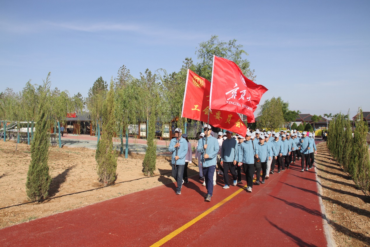 【永利集团304官网新闻中心讯 校工会】5月9日,永利50名教职工赴灵武白芨滩防沙林场参加宁夏教科文卫体工会组织的“健步劳模林 同上一堂思政课”职工健步走活动。活动旨在引领广大职工树立和践行绿水青山就是金山银山的理念,感悟劳模精神、劳动精神、工匠精神,激发广大职工全面建设社会主义现代化美丽新宁夏的强大精神动力。
