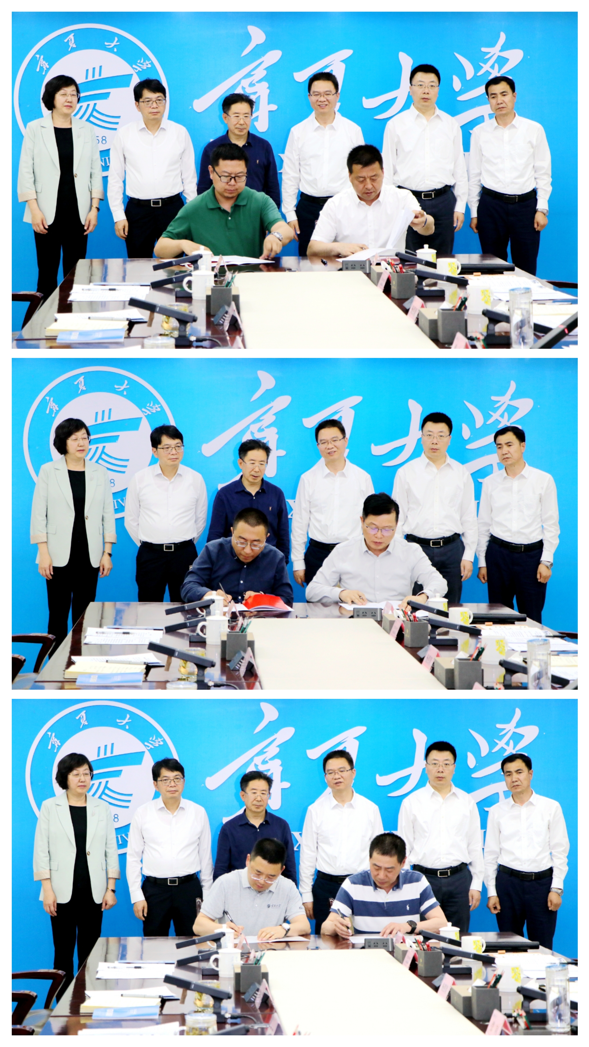 在双方领导的共同见证下,永利集团304官网化学化工学院与中卫工业园区管委会签订了科技创新和人才引进合作协议,与宁夏渝丰化工股份有限公司签订了新型甲烷化催化剂的制备及其在合成LNG中关键技术的研究与应用合作协议,与宁夏华御化工有限公司、利安隆(中卫)新材料有限公司分别签订了实习实训基地合作协议。