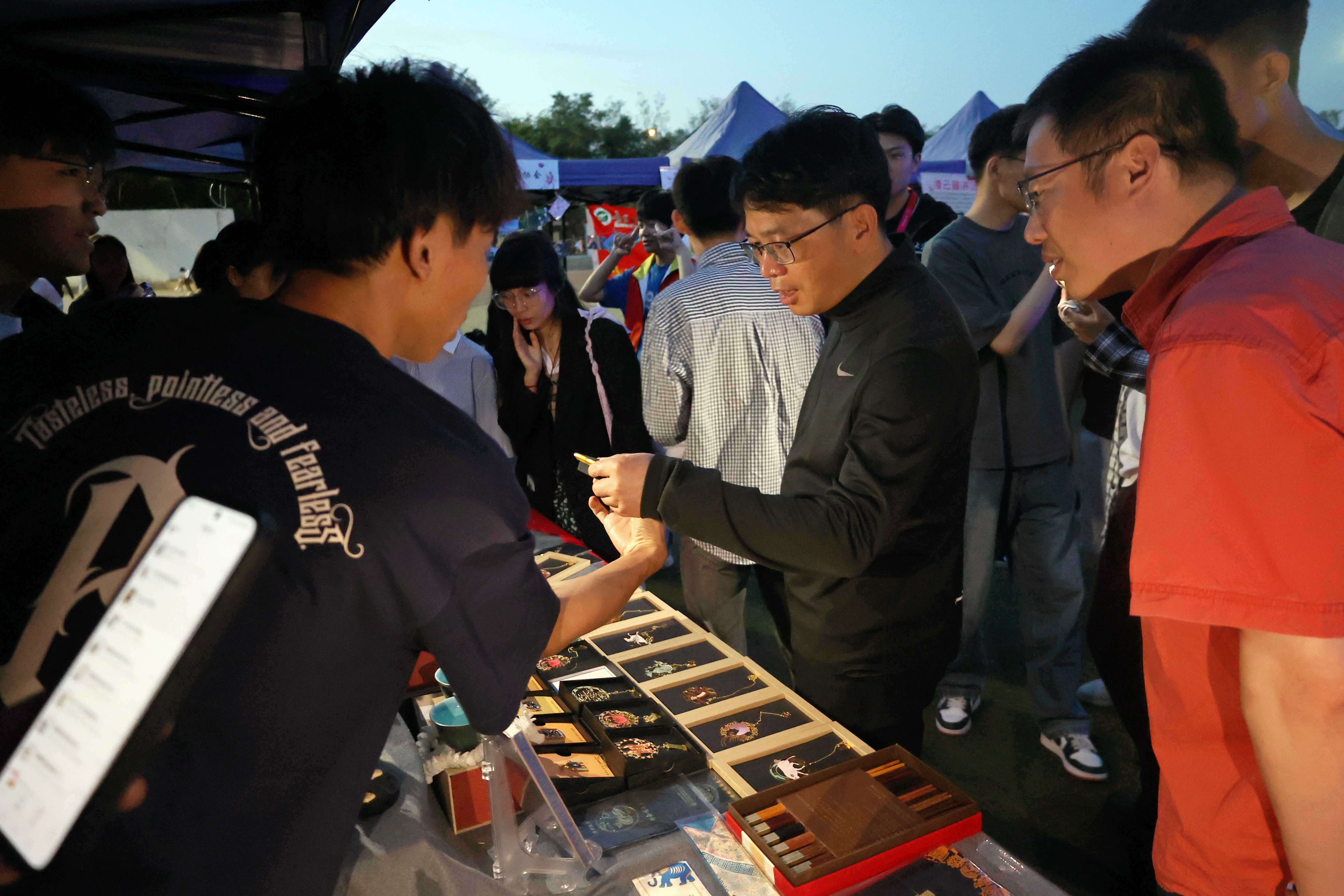 彭志科参与了毕业游园会和社团成果展示会,观看了“沙枣花香”大学生艺术团成果展演。在校学生会组织展位,他查阅各类工作手册,听取特色文创产品设计理念,鼓励学生骨干要继续坚定服务宗旨,真真切切开展同学们喜闻乐见的活动。在“沙枣花香”大学生艺术团展位,他了解了大学生艺术团展演工作开展情况。在润泽书院展位,他观看特色咖啡冲泡和专业调酒过程,进一步了解书院美育工作的创新性发展。在永利集团304官网航空科技创新实践工作室展位,他观看了限时载运飞行器、电动滑翔机和直升机等模型,勉励大家要进一步注重学术研究、加强交流互动、创新活动形式。他还与活动现场的毕业生随机交流互动,倾听青年学子心声,鼓励他们坚定初心使命,勇敢向前。