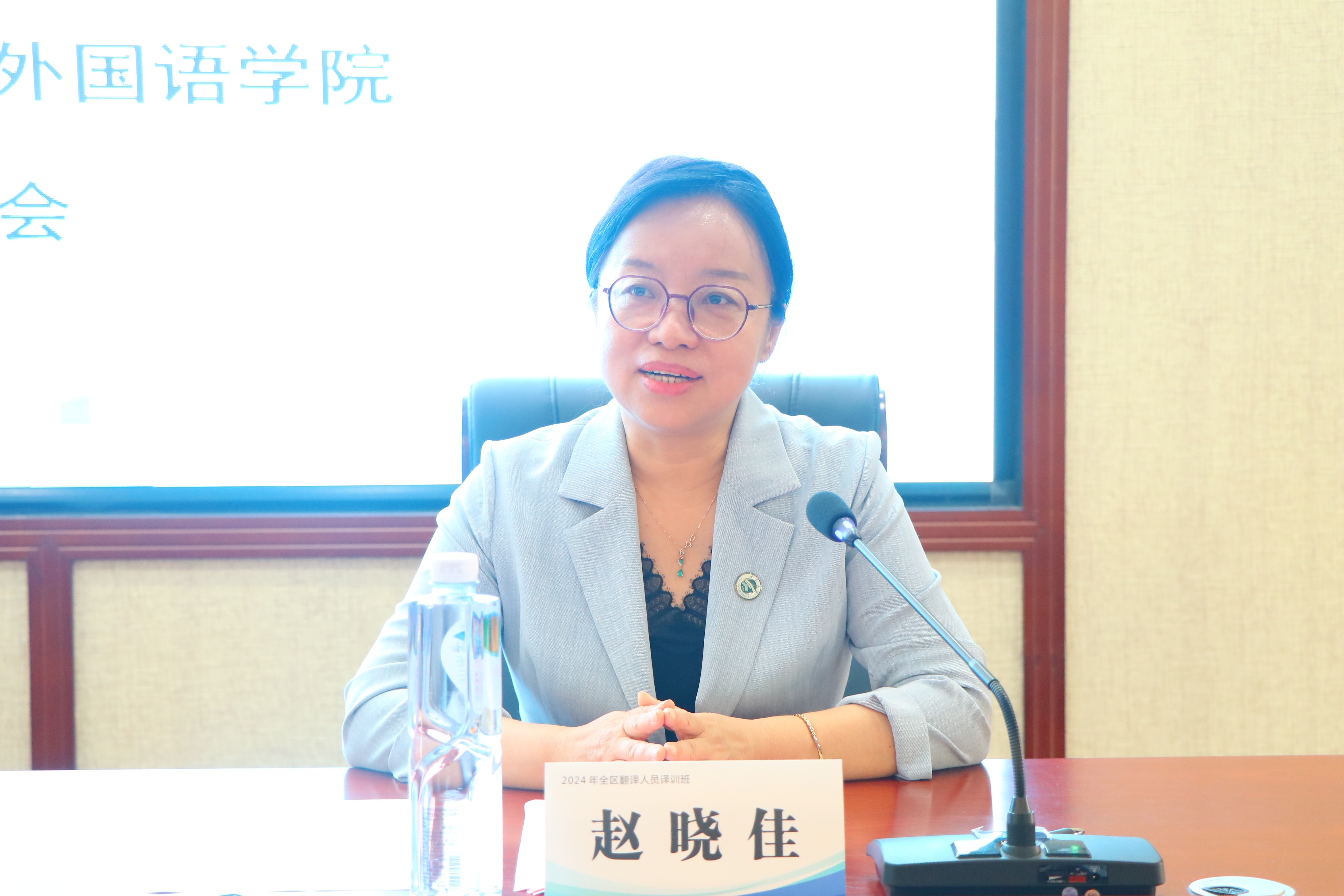宁夏外事翻译室副主任买君洁主持开班仪式,自治区党委外事办公室副主任张轶群、永利集团304官网副校长赵晓佳出席开班仪式并分别致辞。