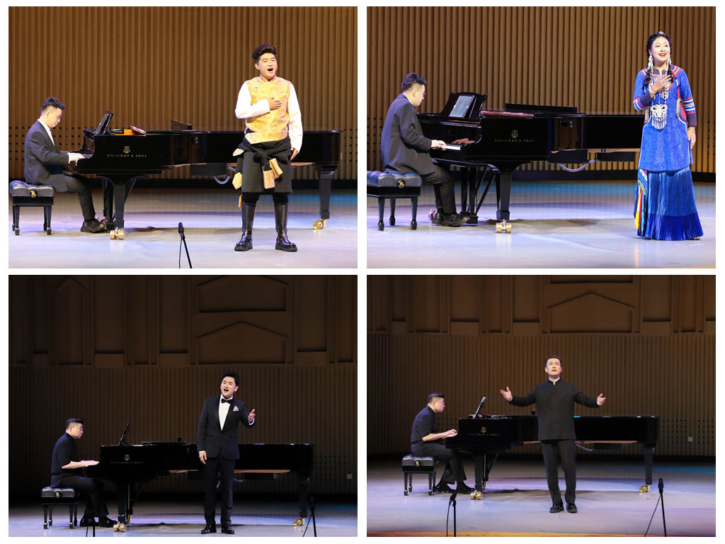 演唱会以十一位女生带来的苗族多声部民歌《芦笙场上》拉开序幕。《新编挂红灯》将民族声乐与京剧音乐巧妙结合,碰撞出特有的色彩;根据唐代诗词谱曲的作品《枫桥夜泊》彰显着含蓄的中国美学精神;蒙古族、彝族、藏族同学带来的家乡民歌让现场听众领略到少数民族民歌的非凡感染力;花儿《雪白的鸽子》唱出穿越时空的淳朴感,让人们直观体验到原生态的诗意浪漫;董华老师倾情演唱的新作品《一念如初》和名曲《春风圆舞曲》,将音乐会推向了高潮。