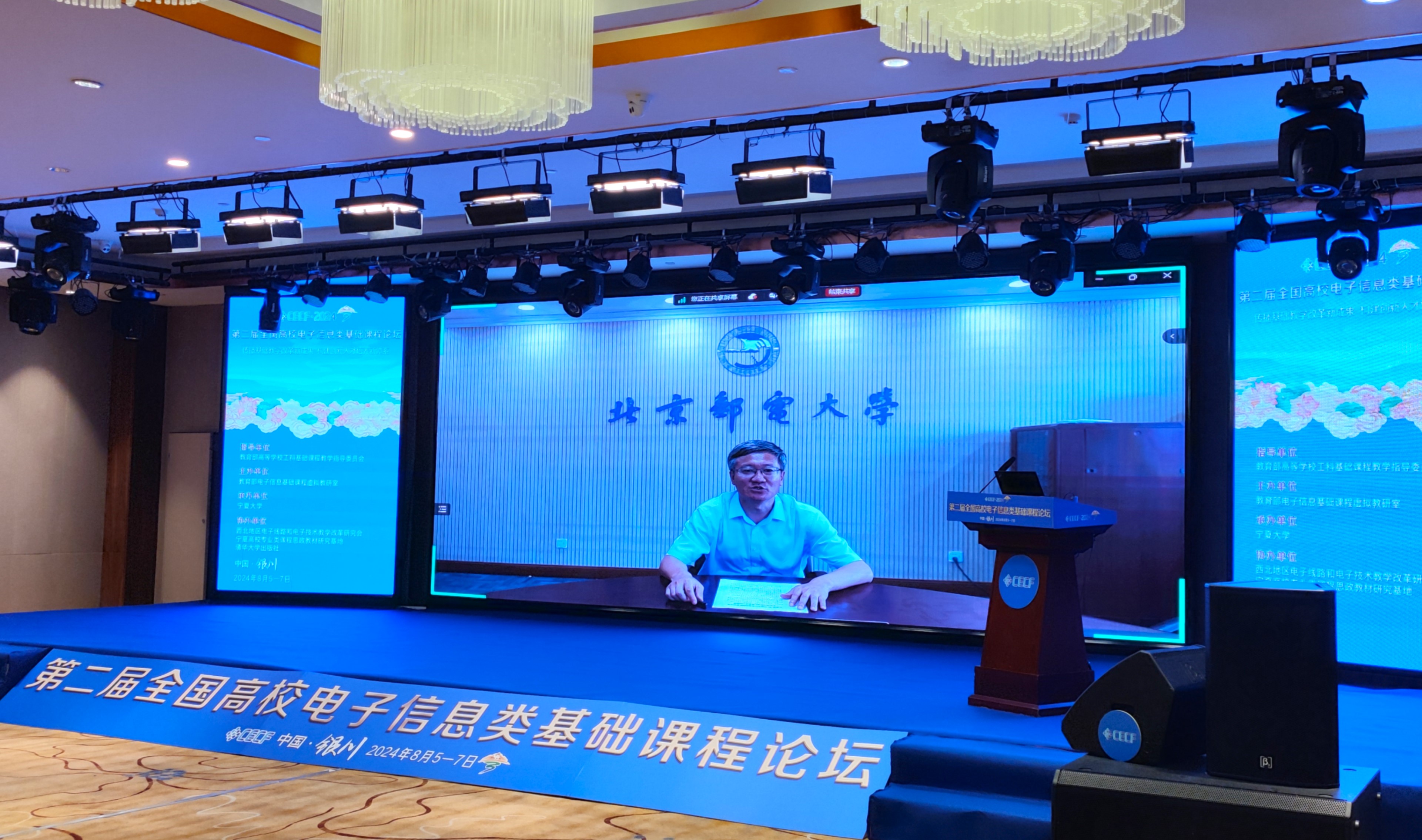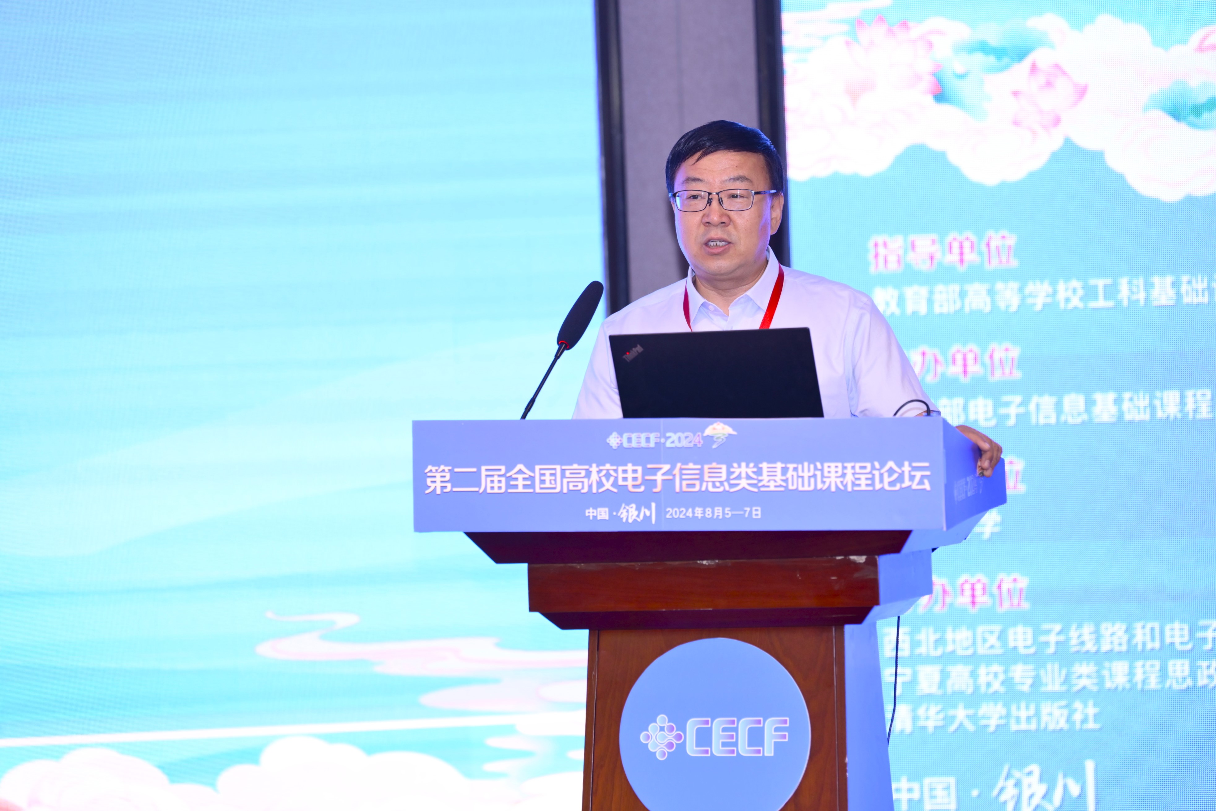 【永利集团304官网新闻中心讯 电子与电气工程学院】8月5日至7日,由教育部高等学校工科基础课程教学指导委员会指导,教育部电子信息基础课程虚拟教研室主办,永利集团304官网承办,西北地区电子线路和电子技术教学改革研究会、宁夏高校专业类课程思政教材研究基地、清华大学出版社协办的第二届全国高校电子信息类基础课程论坛在银川举行。教育部工科基础课程教学指导委员会秘书长、清华大学电机工程与应用电子技术系党委书记于歆杰,北京邮电大学党委常委、副校长黄善国,永利集团304官网党委常委、副校长黄河,清华大学出版社副社长、常务副总编卢先和出席开幕式。来自全国100多所高校的210余位电子信息相关专业院校领导、专业负责人、课程负责人及骨干教师以及10余家企业的20余位代表参加开幕式。开幕式由电子与电气工程学院院长孙学宏主持。