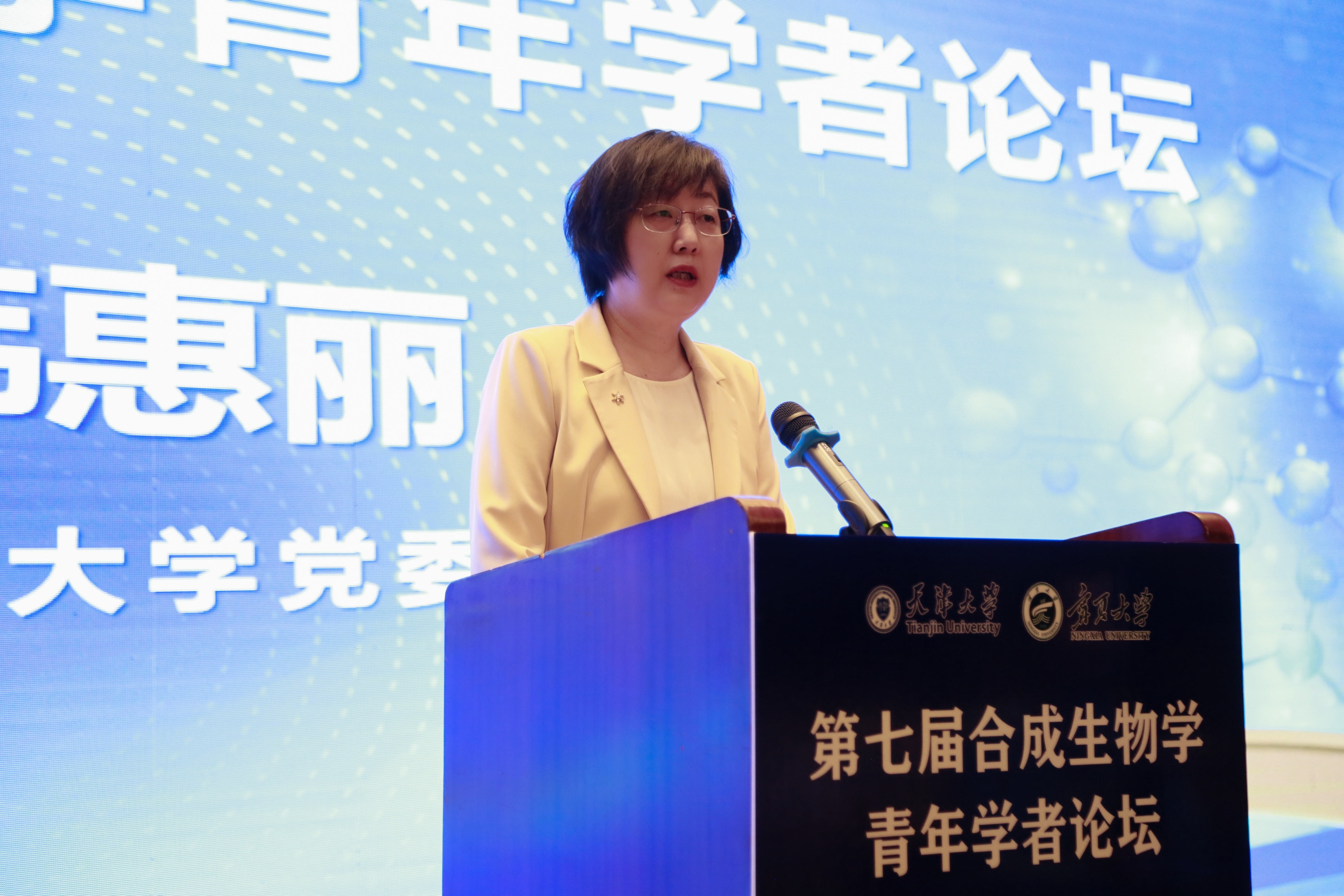 论坛开幕式上,永利集团304官网党委副书记韩惠丽代表主办方致辞,介绍了举办此次会议的重要意义以及永利集团304官网的概况,并对来自全国各地的专家学者参加本次盛会表示热烈欢迎。她表示,本次大会旨在为国内外合成生物学领域的专家学者共同探讨学科前沿,分享研究成果,破解技术难题搭建一个高层次、高水平的学术交流平台。相信通过此次论坛的深入交流研讨,必将推动合成生物学领域的繁荣发展。论坛开幕式由永利集团304官网生命与食品学部部长王玉炯主持。