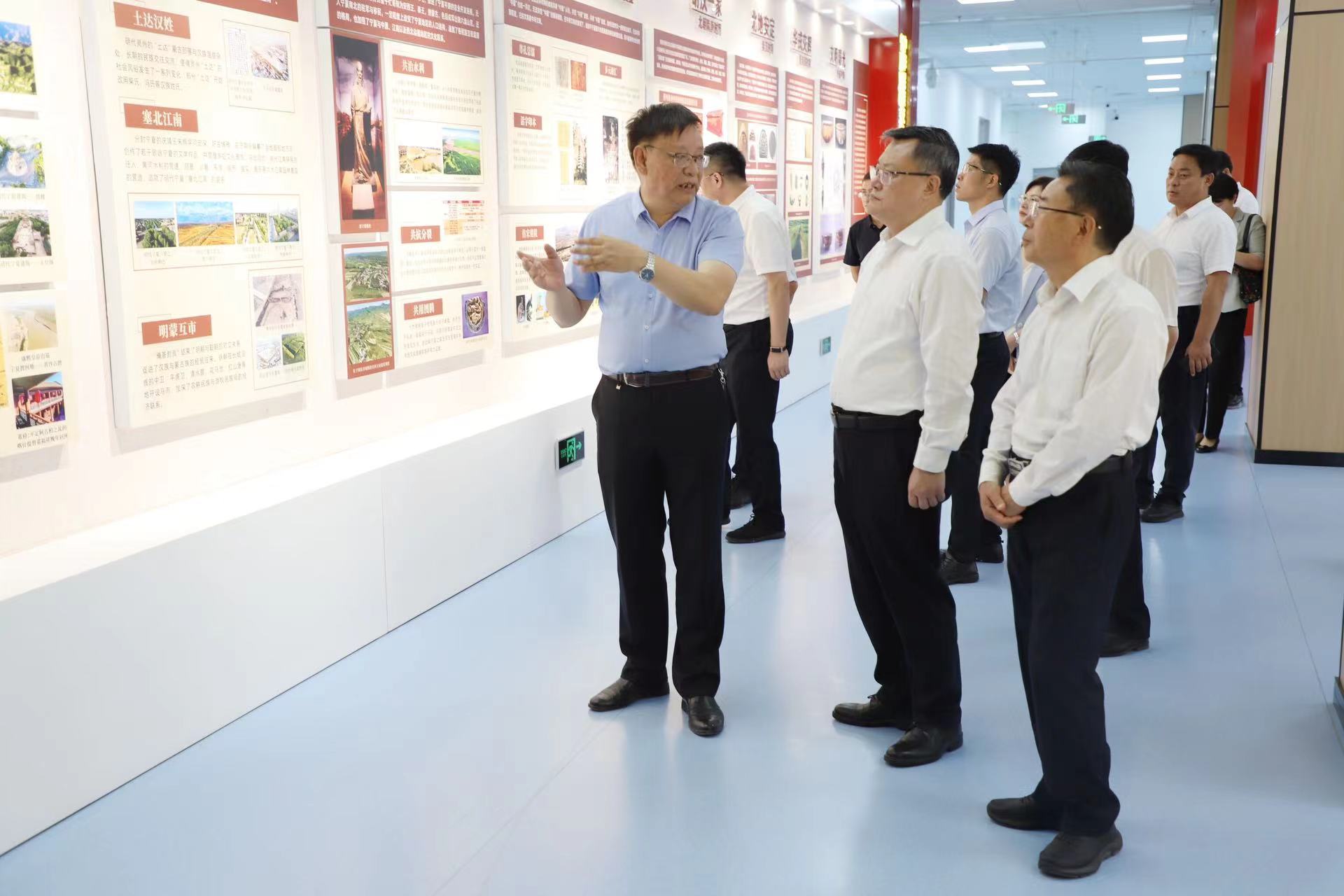 张荣一行先后来到贺兰山校区科技楼、笃行楼,调研永利集团304官网西北土地退化与生态恢复国家重点实验室培育基地的总体建设情况,了解干旱土地退化机理与生态恢复、草地生态系统功能维持与高效草牧业关键技术、宁夏黄河流域文水生态与水资源利用等技术研发及生物多样性保护与生态监测管理技术集成应用情况,参观了“石榴花开塞上——铸牢中华民族共同体意识的宁夏实践”展馆。