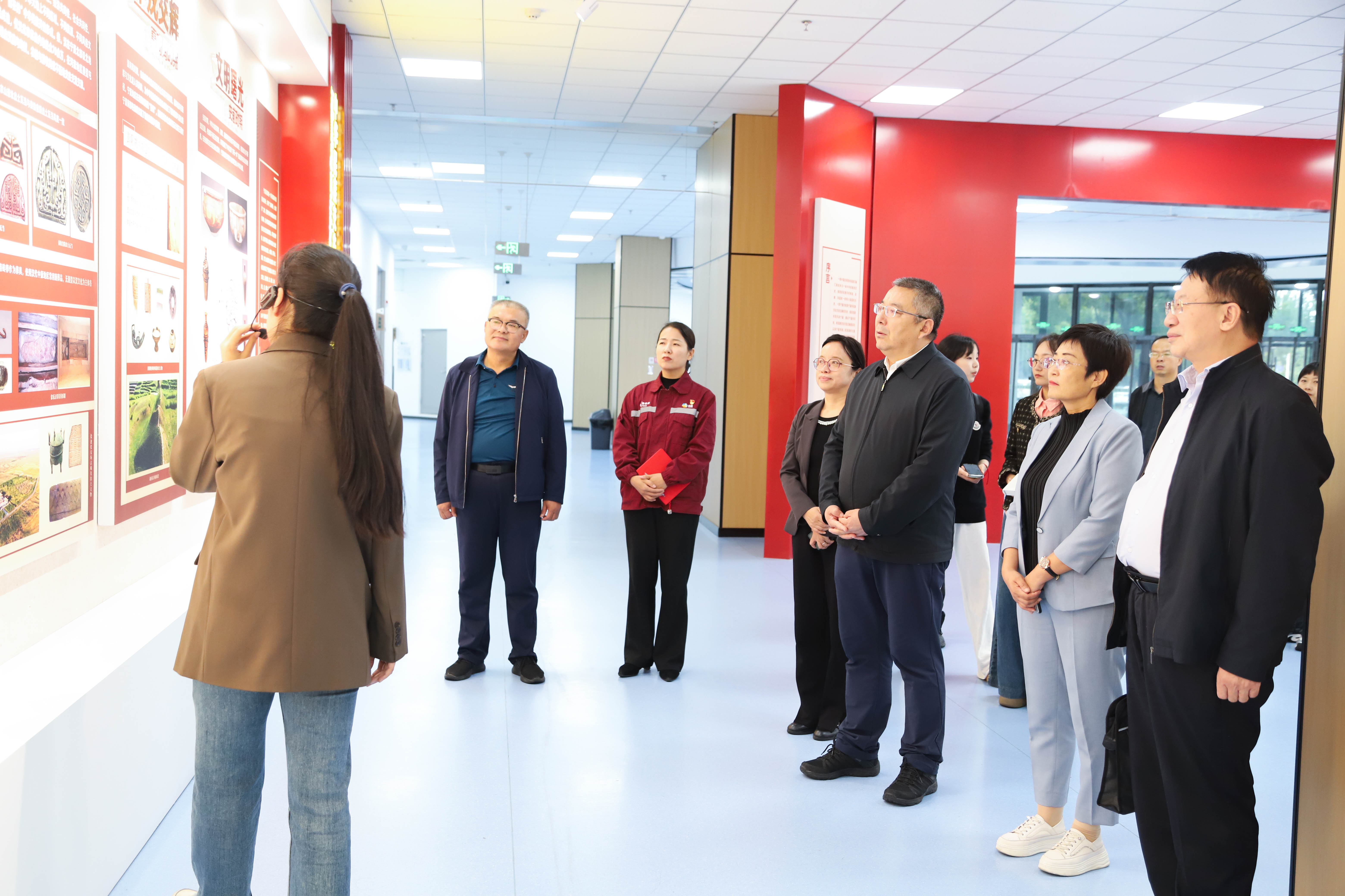 会前,赵晓佳陪同尤文涛和劳模代表一行参观了永利“石榴花开润塞上——铸牢中华民族共同体意识的宁夏实践”教育展馆。