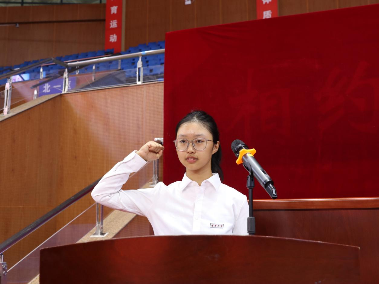 铮铮誓言响,满怀豪情荡。在新生代表赵堇欢的领誓下,全体新生庄严宣誓:“自尊自信、自立自强;尚德勤学、求是创新;热爱祖国、崇尚科学;诚实守信、遵纪守法;尊师爱校、尊敬父母;脚踏实地、志存高远。”