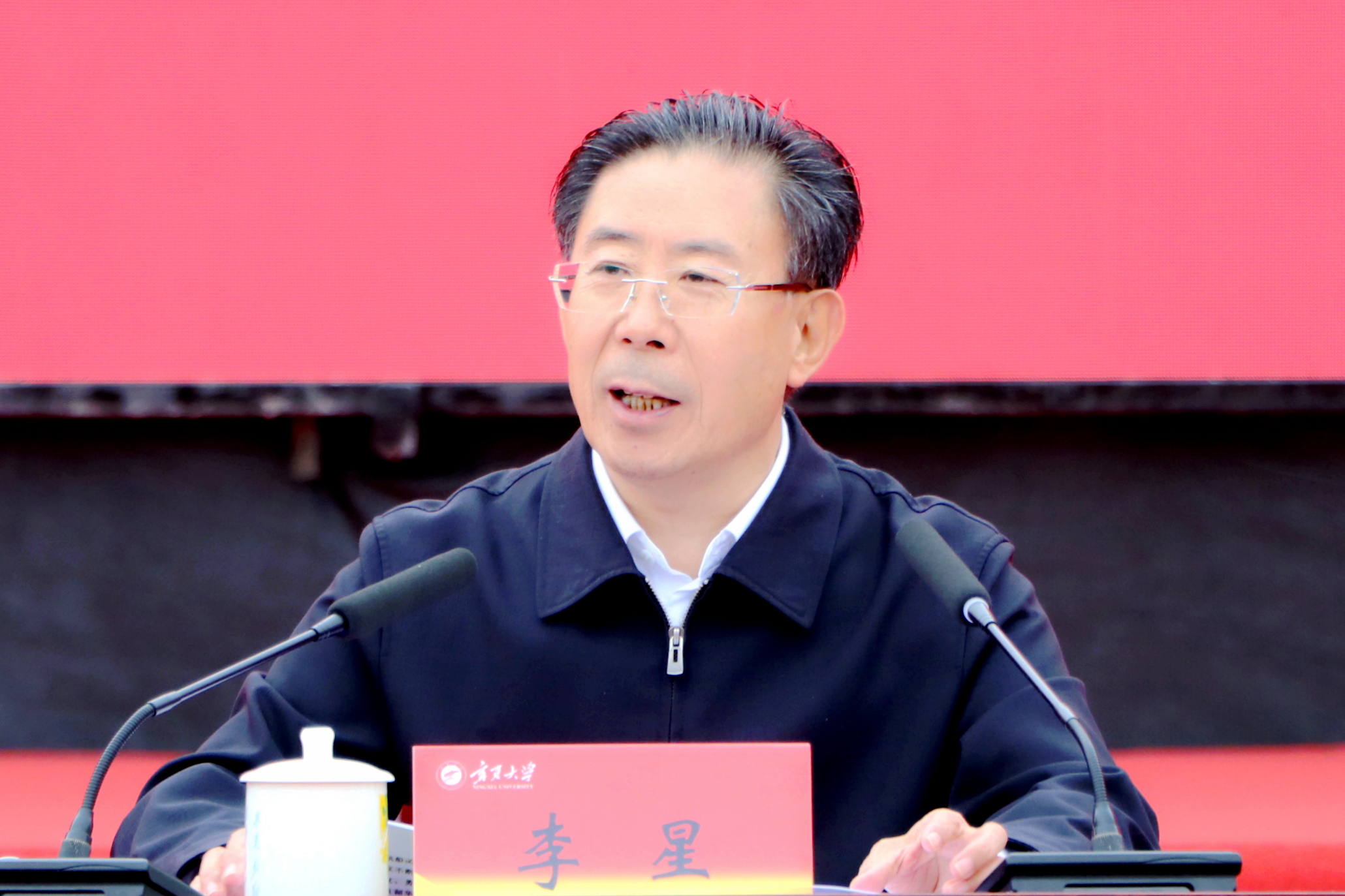 李星与同学们深情分享了2021级学生洪毓敏追随心中的报国梦、2023级硕士研究生肖博文志愿服务西部并广泛参与社会实践、2021级学生王艺诺努力学习、刻苦钻研并获得多项奖励、2023级学生周晓亮在跳远与田径的赛场上拼搏前行、刷新纪录的成长经历,并向大家送上五点寄语。他希望,作为新时代中国青年,同学们要坚定信念、胸怀理想,涵养志存高远的积极心态;牢记使命、增强魄力,保持敢作敢为的担当姿态;艰苦奋斗、自力更生,造就勤学苦练的良好常态;积极进取、敢于创新,锤炼踔厉奋发的拼搏状态;凝中国心、强中国梦,维护中华民族的团结统一。