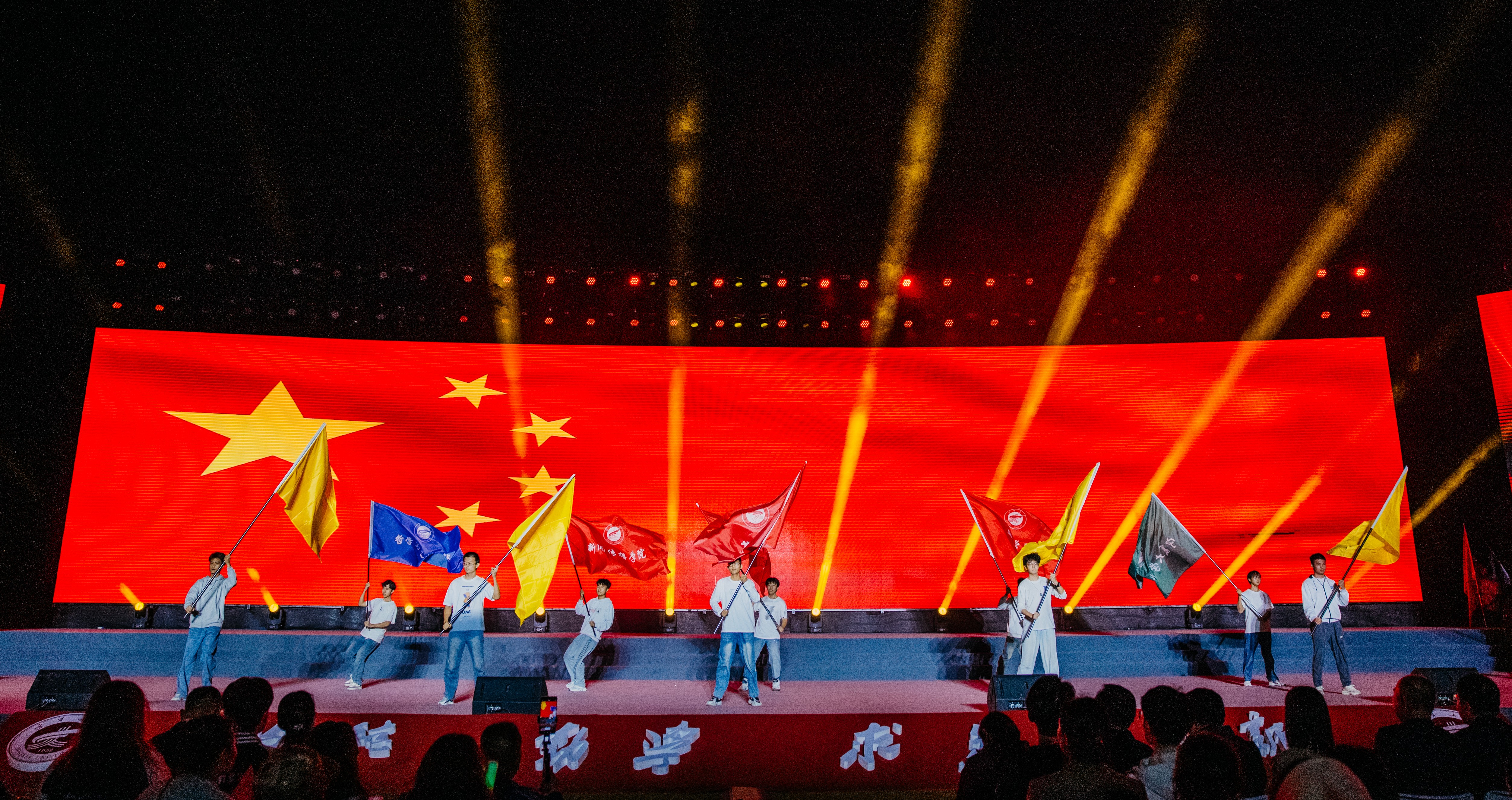 75名旗手高举校旗和学院、学部、书院旗帜绕场奔跑,旗帜飞扬,代表全体师生向伟大祖国送上最衷心的祝福。晚会在新生辅导员和全体2024级新生齐声高唱《我们是年轻的大学生》和《我和我的祖国》中落下帷幕。激昂的歌声汇作温暖的洪流,动人心弦,每个人的心都与祖国母亲紧紧相连,现场气氛热烈,让人热血沸腾。
