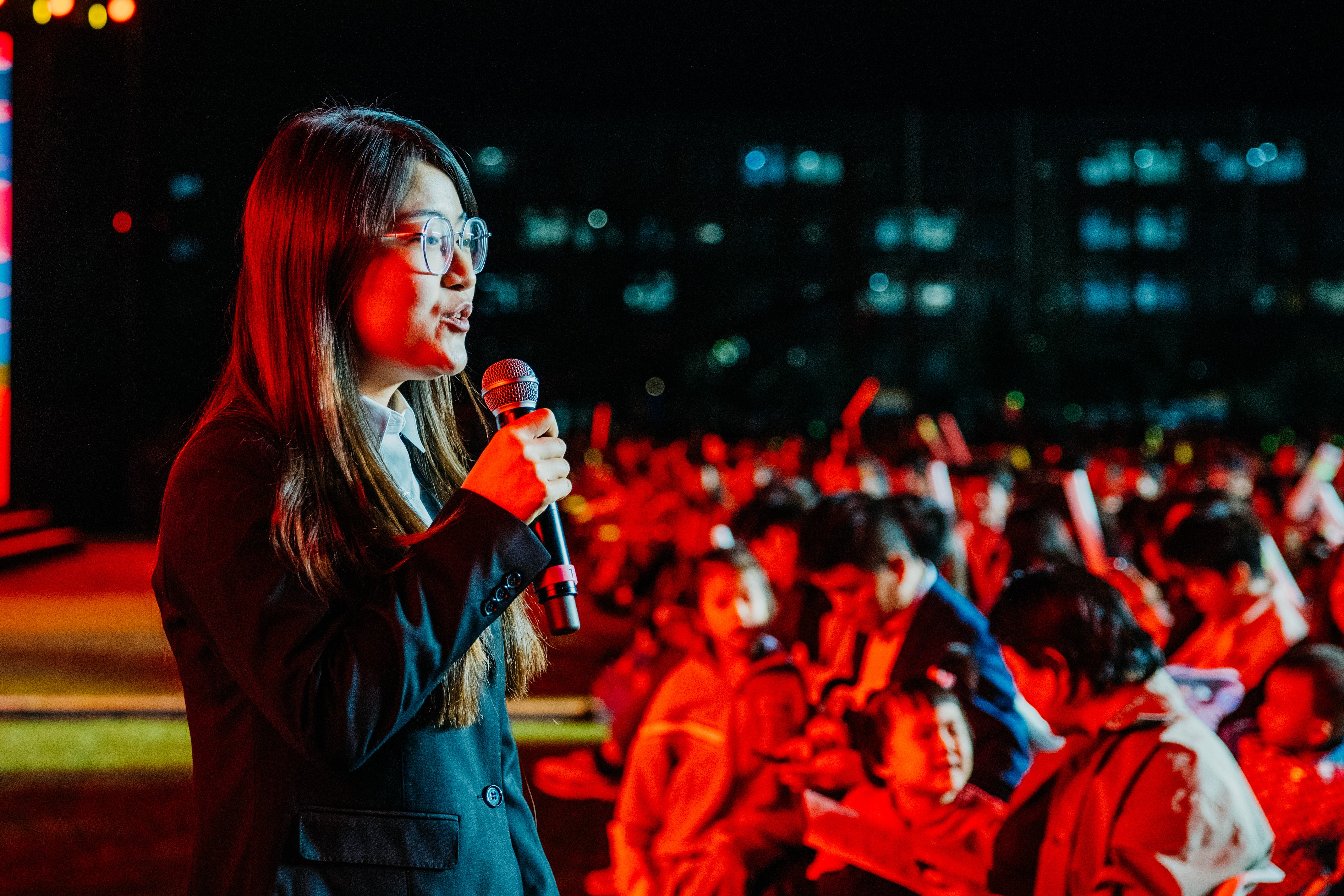 贰柒乐队带来的《我们的时光》《火车日记》燃爆全场,大展青年学子们的蓬勃朝气;舞蹈《家乡永远有盏灯》,用优美的舞姿表达了对故乡深深的情感与无尽的思念;歌曲联唱《我相信》《我的未来式》中,台下观众纷纷挥舞起手中的荧光棒,跟着旋律一同欢唱,全场瞬间成为欢乐的海洋。