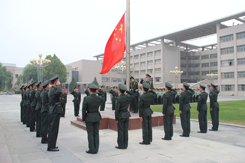 早上八点半,校党委副书记赵利宁,党委宣传部部长冯奎,学生处副处长刘伯川,校团委副书记马慧,校学生会全体干部、各学院学生会主席团、国防生代表、经济管理学院学生代表500余人在校本部A区国旗下举行了隆重而庄严的升国旗仪式。在雄壮的国歌声中,神圣的五星红旗在国防生仪仗队的护卫下冉冉升起。在庄严的国旗下,校学生会主席夏金柱向全校师生发出“凝心聚力、奋发有为,做社会主义事业的合格建设者和可靠接班人”的倡议。