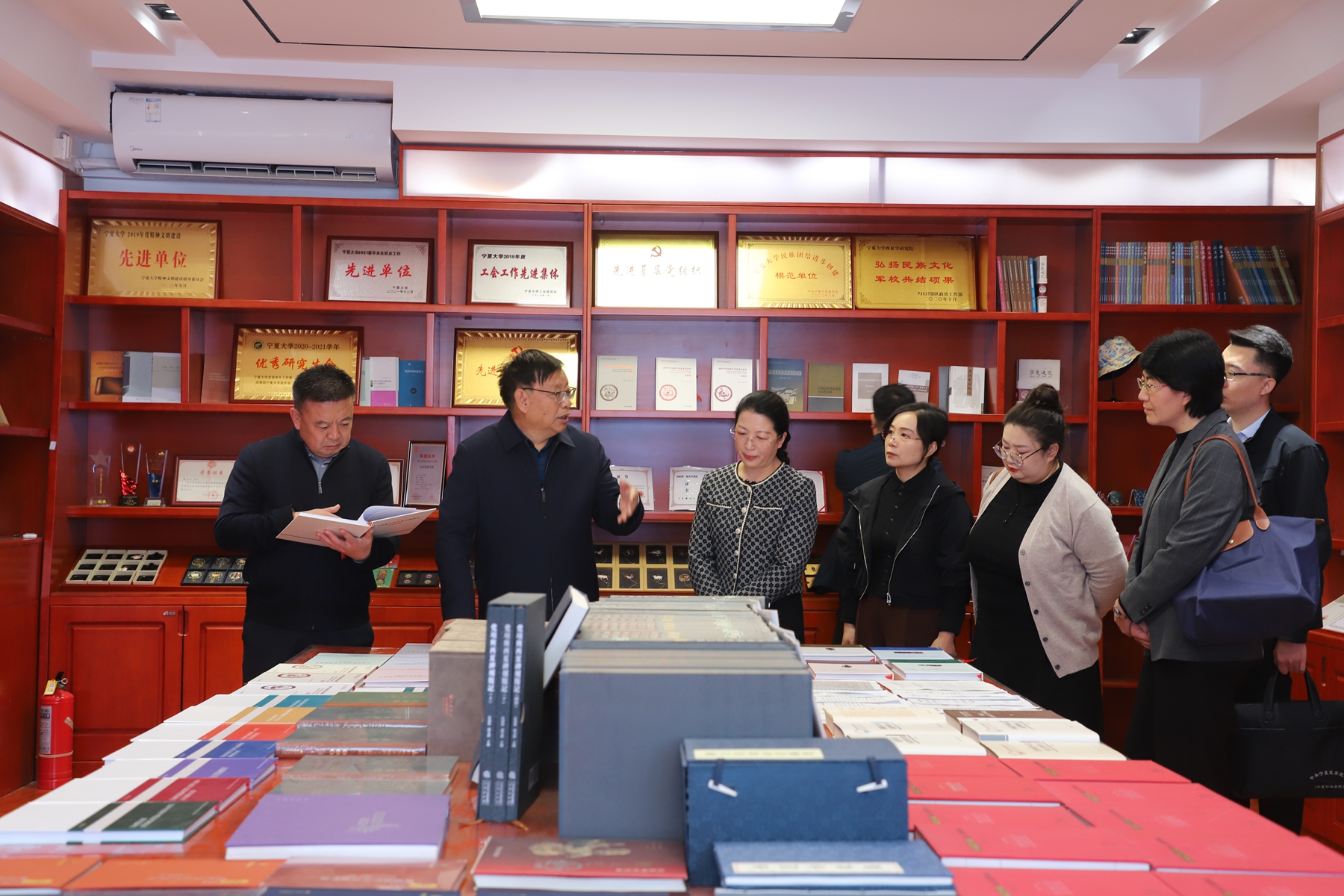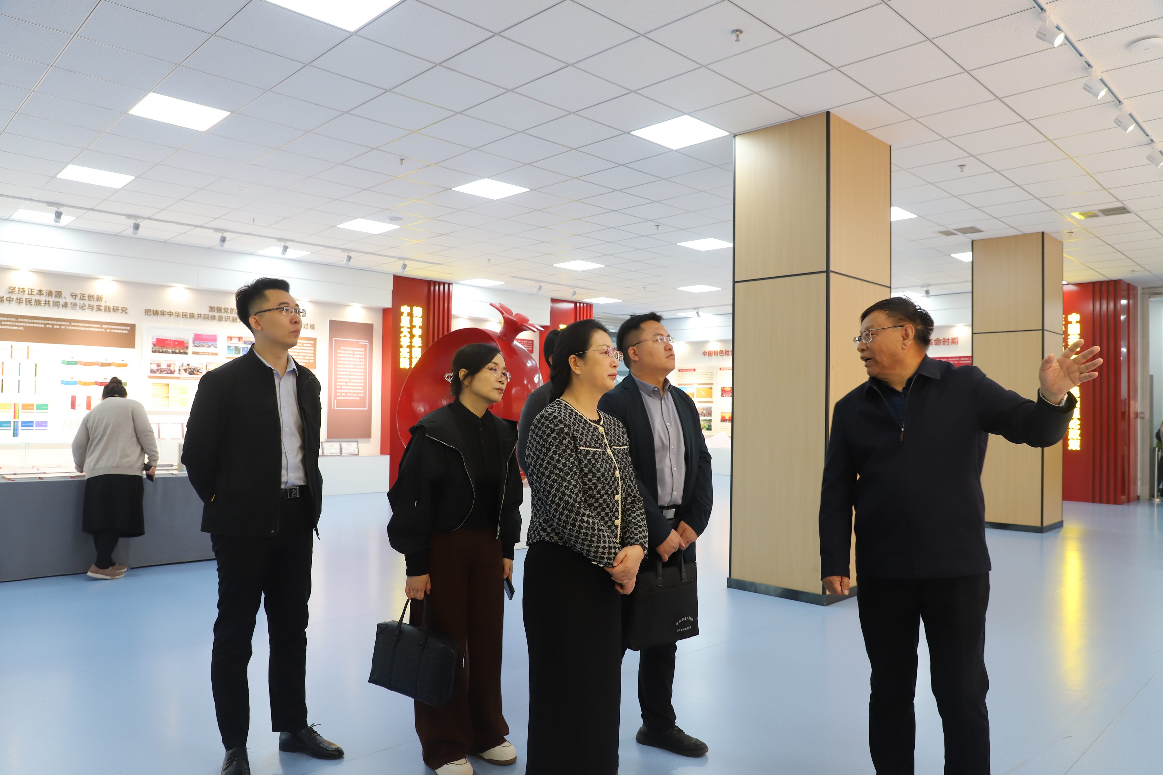 在怀远校区,王丛霞一行先后调研了永利铸牢中华民族共同体意识研究院(民族与历史学院)、马克思主义书房的建设情况,并前往贺兰山校区“石榴花开润塞上——铸牢中华民族共同体意识的宁夏实践”教育展馆,详细了解了永利集团304官网中华民族共同体意识研究的进展及成果。