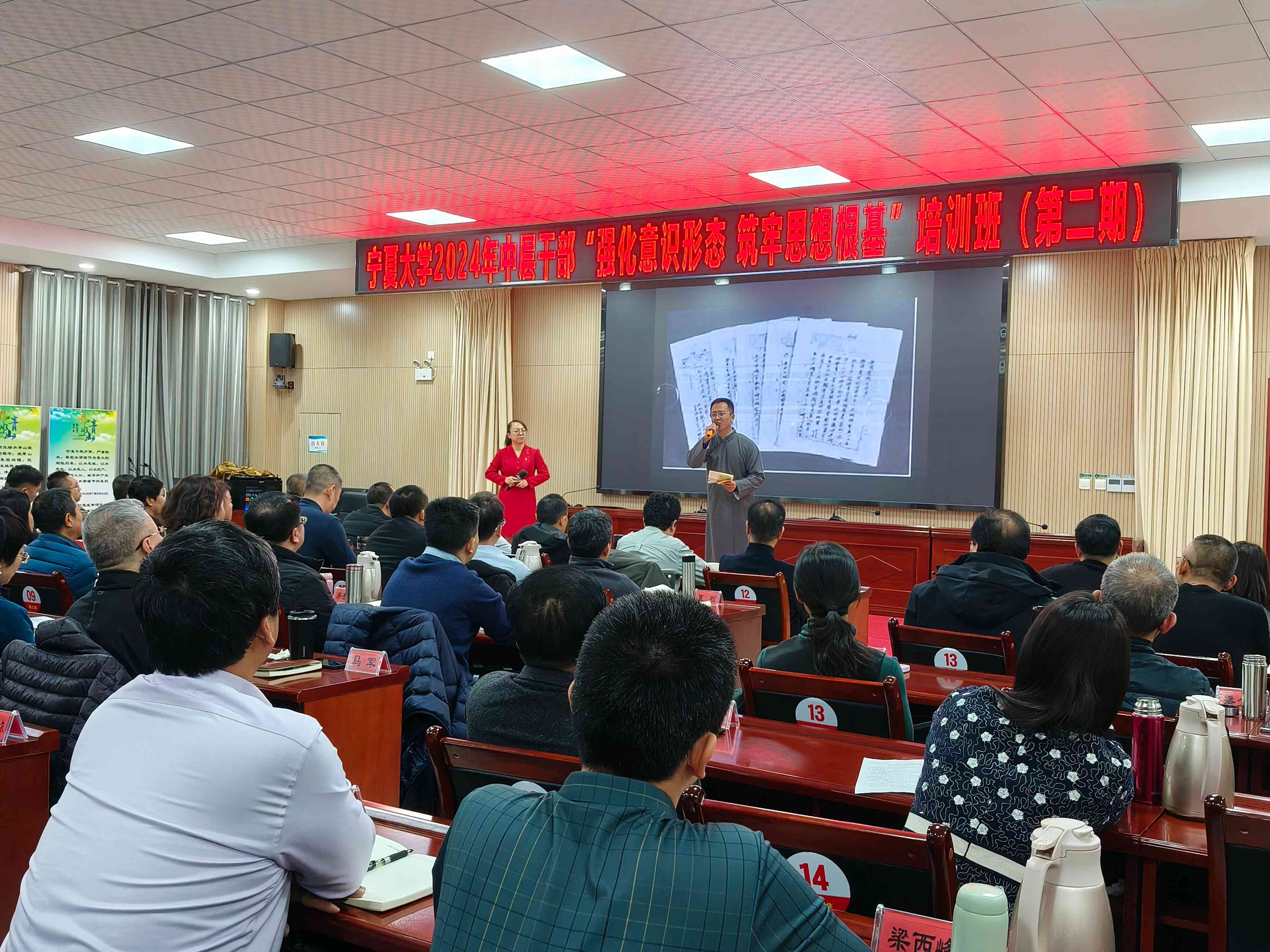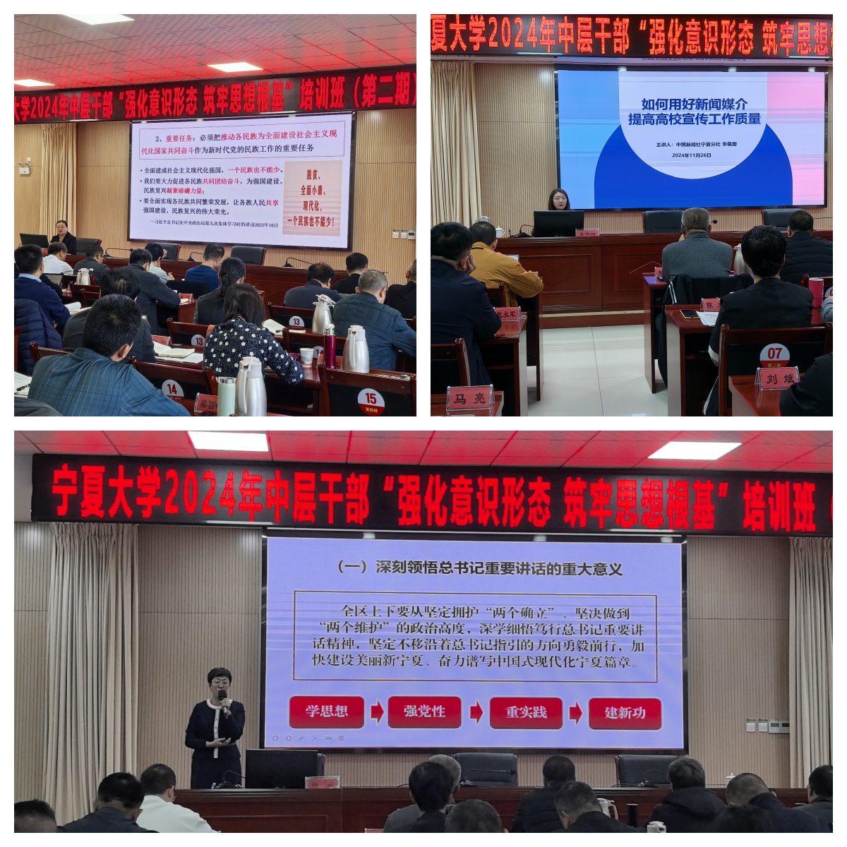 【永利集团304官网新闻中心讯 李瑾/文 李瑾、刘兆强/图】为持续深入学习党的二十届三中全会精神,进一步加强干部队伍建设,提升中层干部新闻宣传技能和意识形态工作本领,学校于11月24日至29日在石嘴山市委党校(石嘴山市行政学院)举办中层干部“强化意识形态 筑牢思想根基”培训班(第二期)。各中层党组织分管新闻宣传业务的班子成员,各单位新媒体业务指导教师代表等63人参加培训。校党委常委、组织部部长张永丽主持开班仪式。
