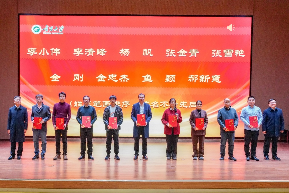 农林与生态学部党委书记张宁,农林与生态学部常务副部长、林业与草业学院院长马红彬,农学院院长李培富,生态环境学院执行院长钟艳霞,润泽书院党委书记、院长马骏分别为首批入驻“一站式”学生社区的校内外学业导师代表颁发聘书。