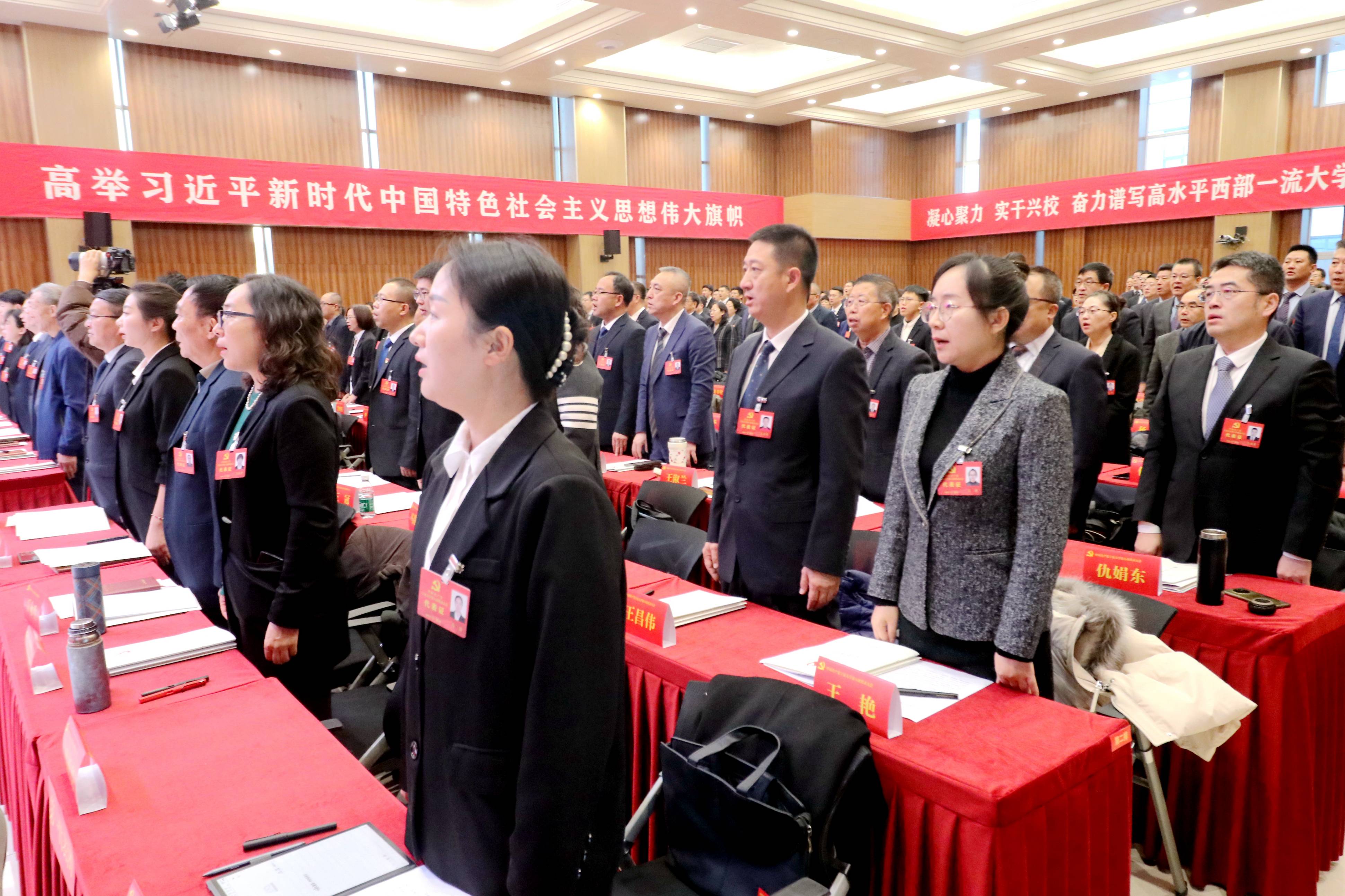 报告号召,新征程重任在肩,新使命催人奋进,让我们更加紧密地团结在以习近平同志为核心的党中央周围,高举习近平新时代中国特色社会主义思想伟大旗帜,凝心聚力、勇担使命,守正创新、实干兴校,为奋力谱写高水平西部一流大学建设新篇章而团结奋斗。