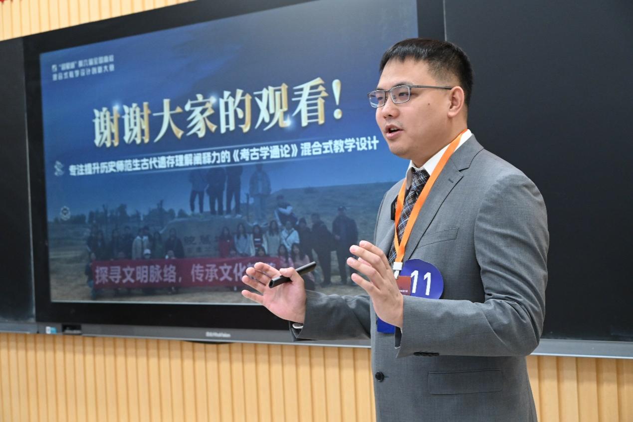 代表永利参与现场决赛的邓文韬老师汇报了《专注于提升历史师范生古代遗存理解阐释力的<考古学通论>混合式教学设计》,从内容重构、资源建设、模式流程、课程思政与评价反馈等角度讲解了为历史师范生量身打造个性化培养课程的路径与方法,体现了以学生为中心,以成果为导向并持续改进的OBE教学理念,赢得了评委的一致好评。
