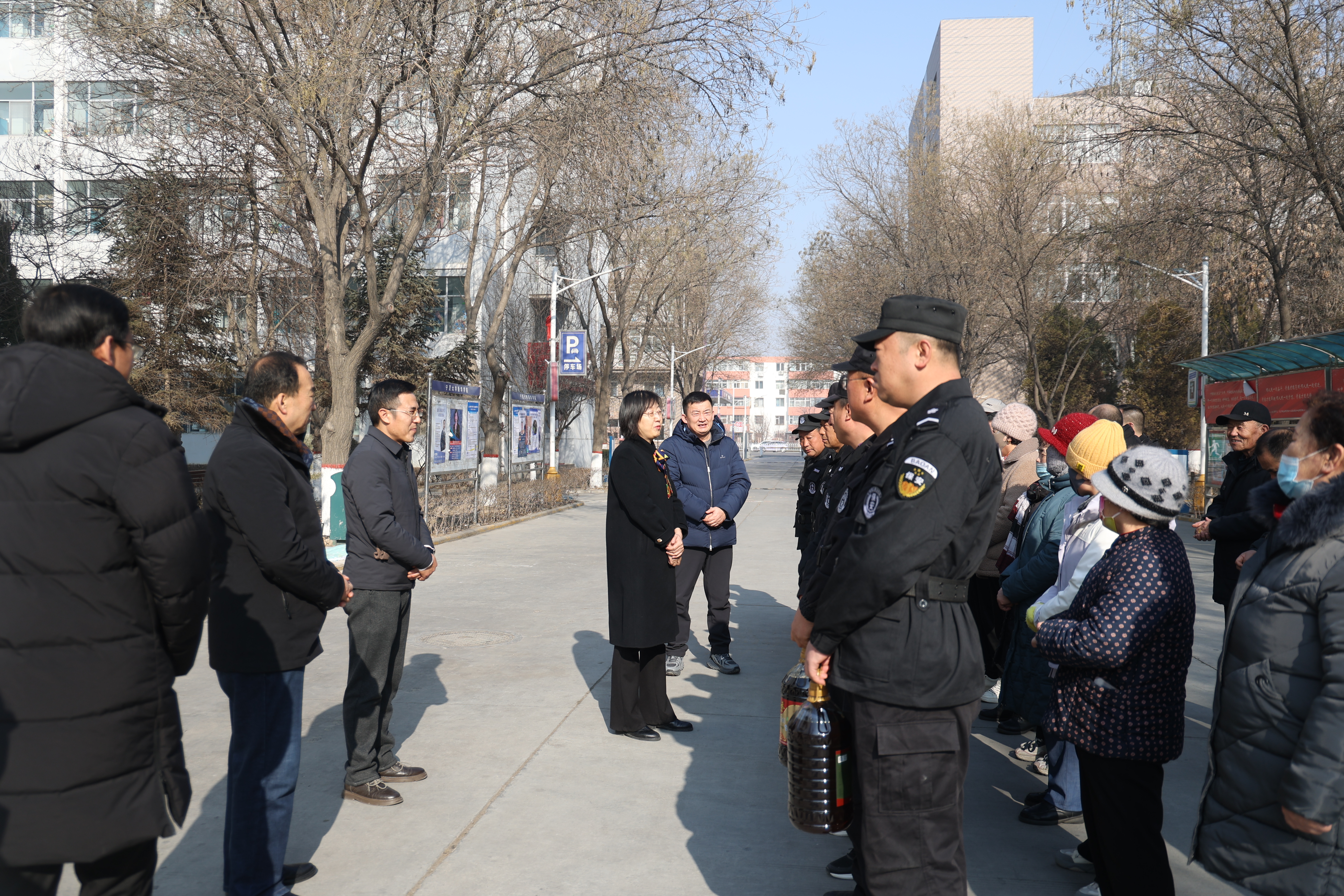 校领导一行分别前往贺兰山校区、怀远校区、文萃校区、新华学院、附属中学、金凤校区,看望慰问校园保卫、勤务、水电暖、学生公寓、保洁、食堂、物业等在岗职工,与大家亲切交谈,详细询问了他们工作生活、值班值守等情况,并送上新春祝福和学校精心准备的慰问品。