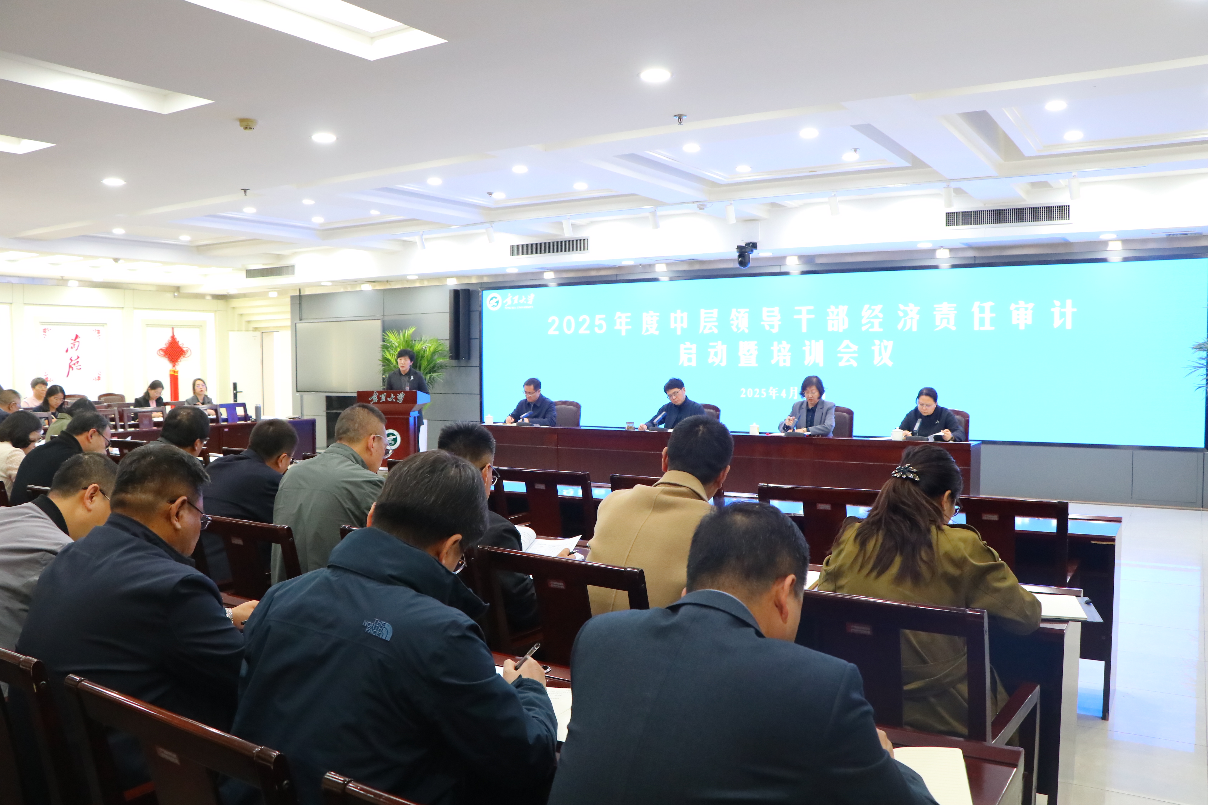 在培训环节,审计处副处长马萍围绕国家和学校审计体制机制改革情况、经济责任审计的重点内容、常见问题案例以及审计整改和结果运用相关规定开展《领导干部经济责任审计重点内容及案例》专题培训,帮助领导干部提升经济责任意识和风险防范能力。