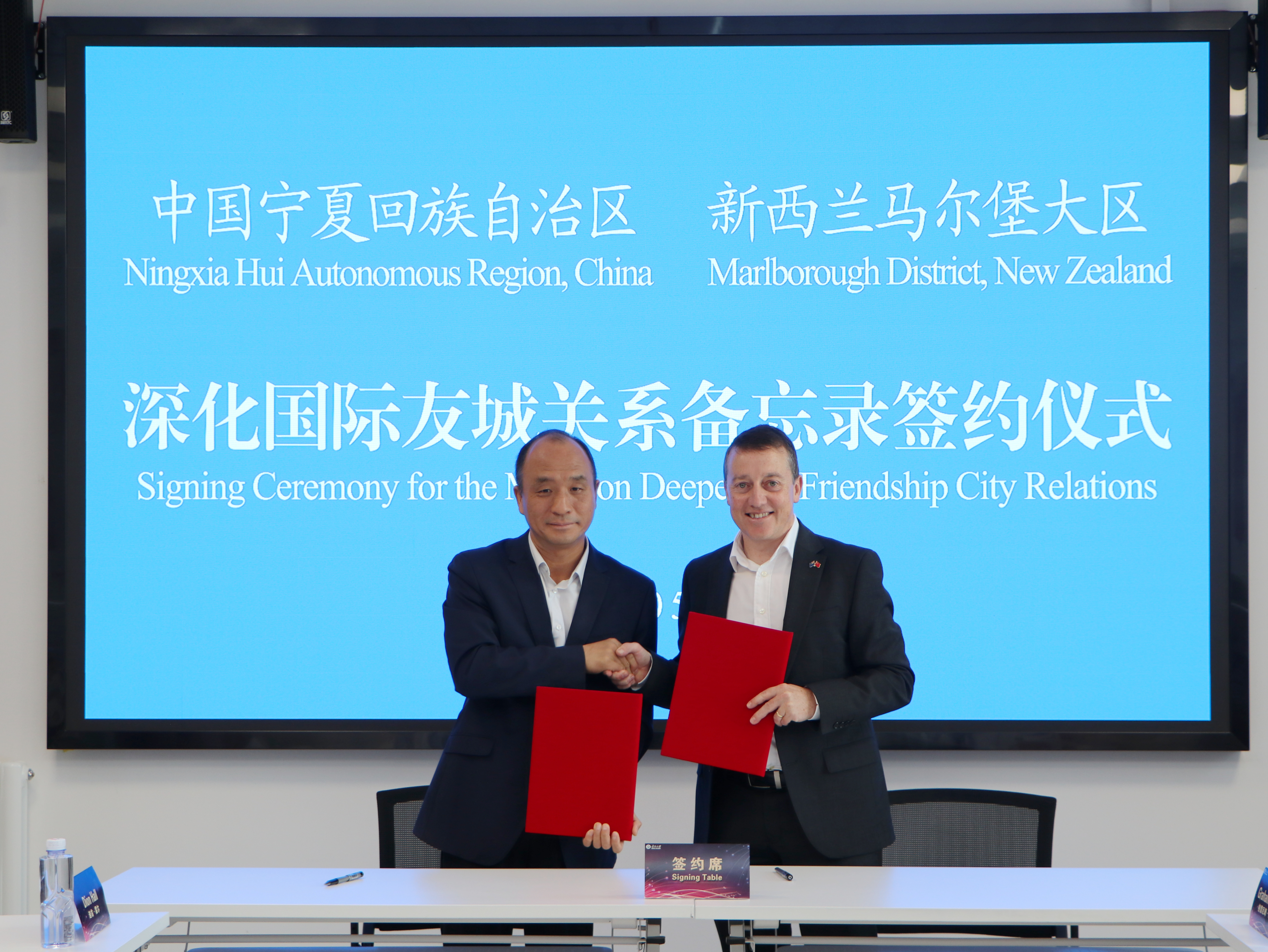 座谈会后,宁夏回族自治区与马尔堡大区签署了关于深化国际友城关系备忘录。