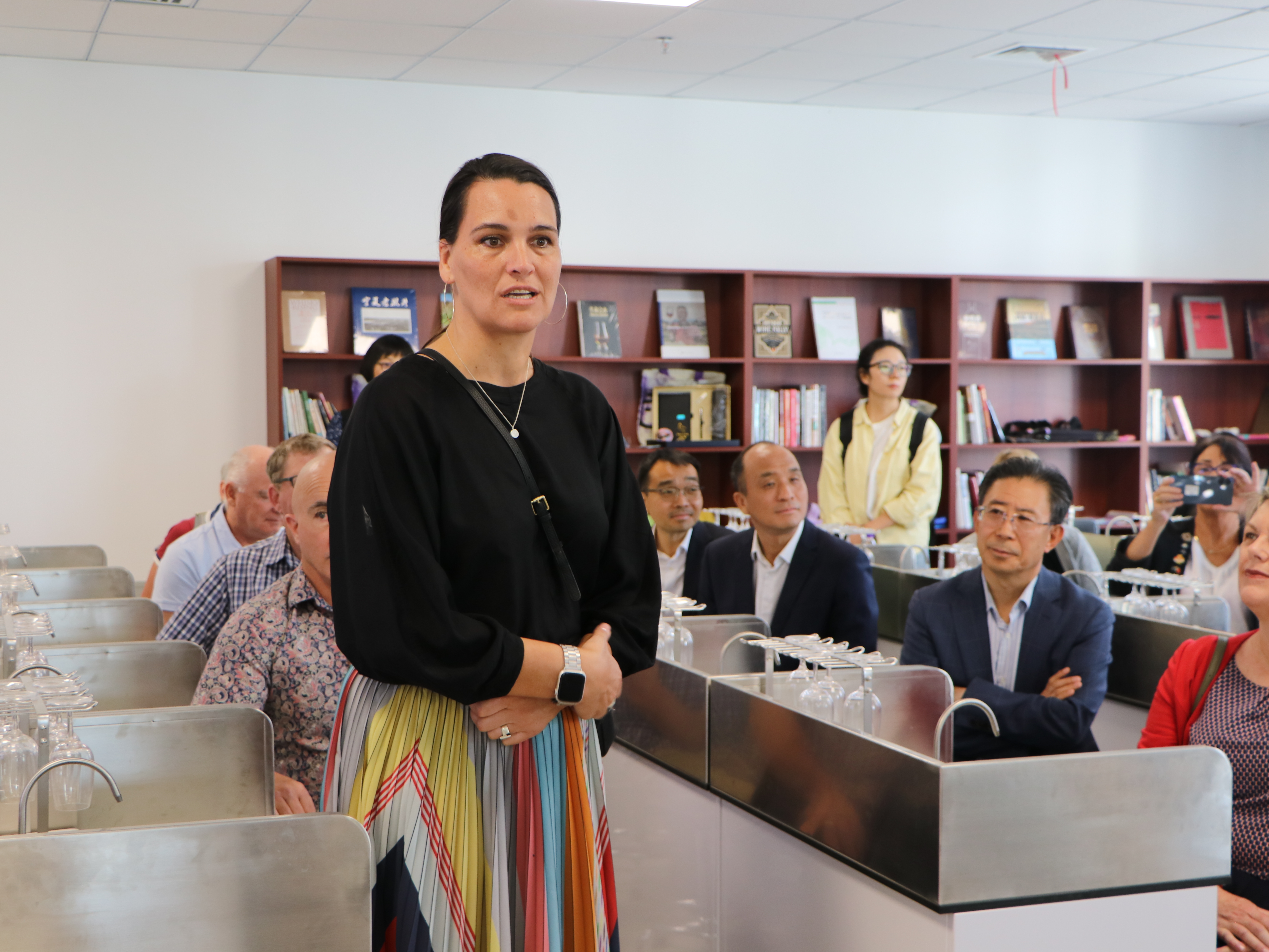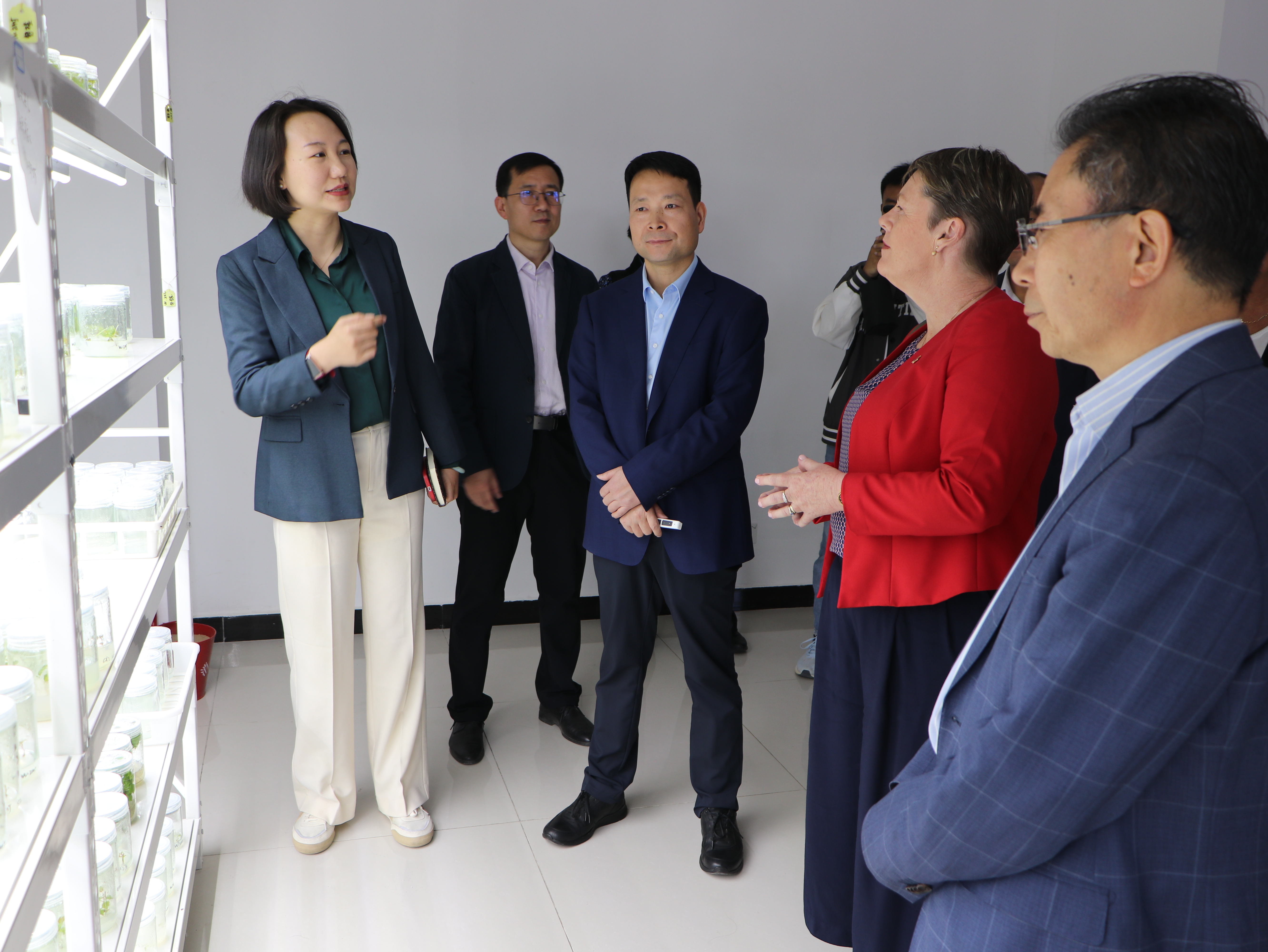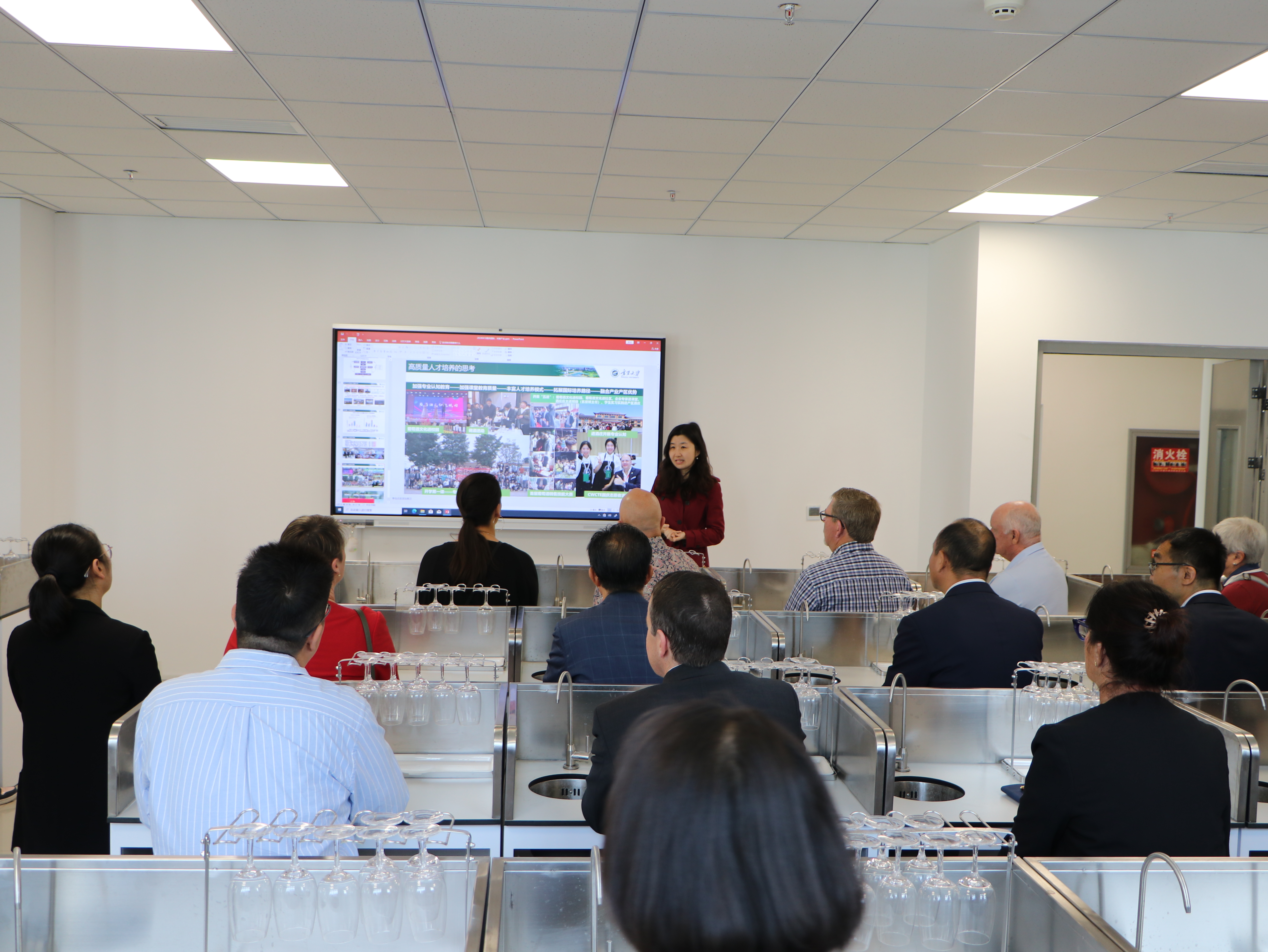 纳迪恩·泰勒一行在朔方校区参观了永利集团304官网国家葡萄产业技术体系水分生理及节水栽培实验室,详细了解了宁夏葡萄酒发展历史,听取了葡萄酒与园艺学院相关负责人对学院历史沿革、人才培养、师资队伍建设及科研成果等方面情况的介绍,并参加了葡萄与葡萄酒工程专业学生品鉴研讨活动,与学生进行了交流互动。