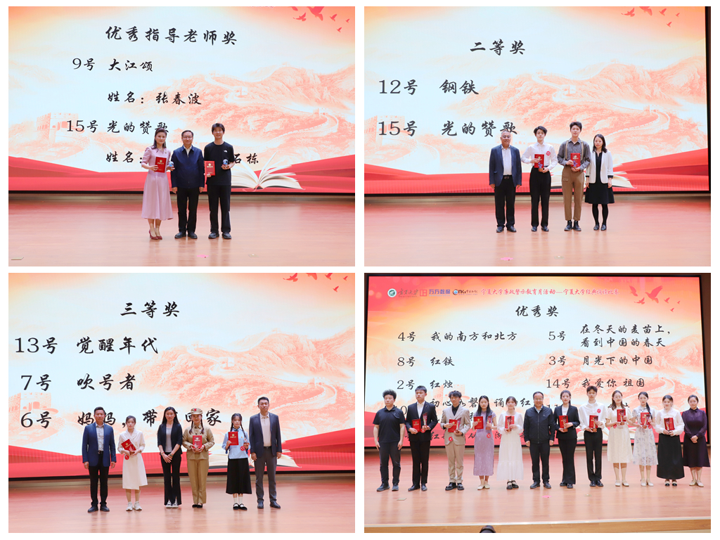 评委团从诵读技巧、语言表达、情感传递、舞台表现等维度综合评分,并现场进行了作品点评。最终,《大江颂》获得一等奖,《钢铁》《光的赞歌》获得二等奖,《吹号者》等3部作品获得三等奖,《红烛》等9部作品获得优秀作品奖。活动还评选出张春波、蒋宇欢、石栋等为优秀指导教师,守正书院等9个单位获优秀组织奖。
