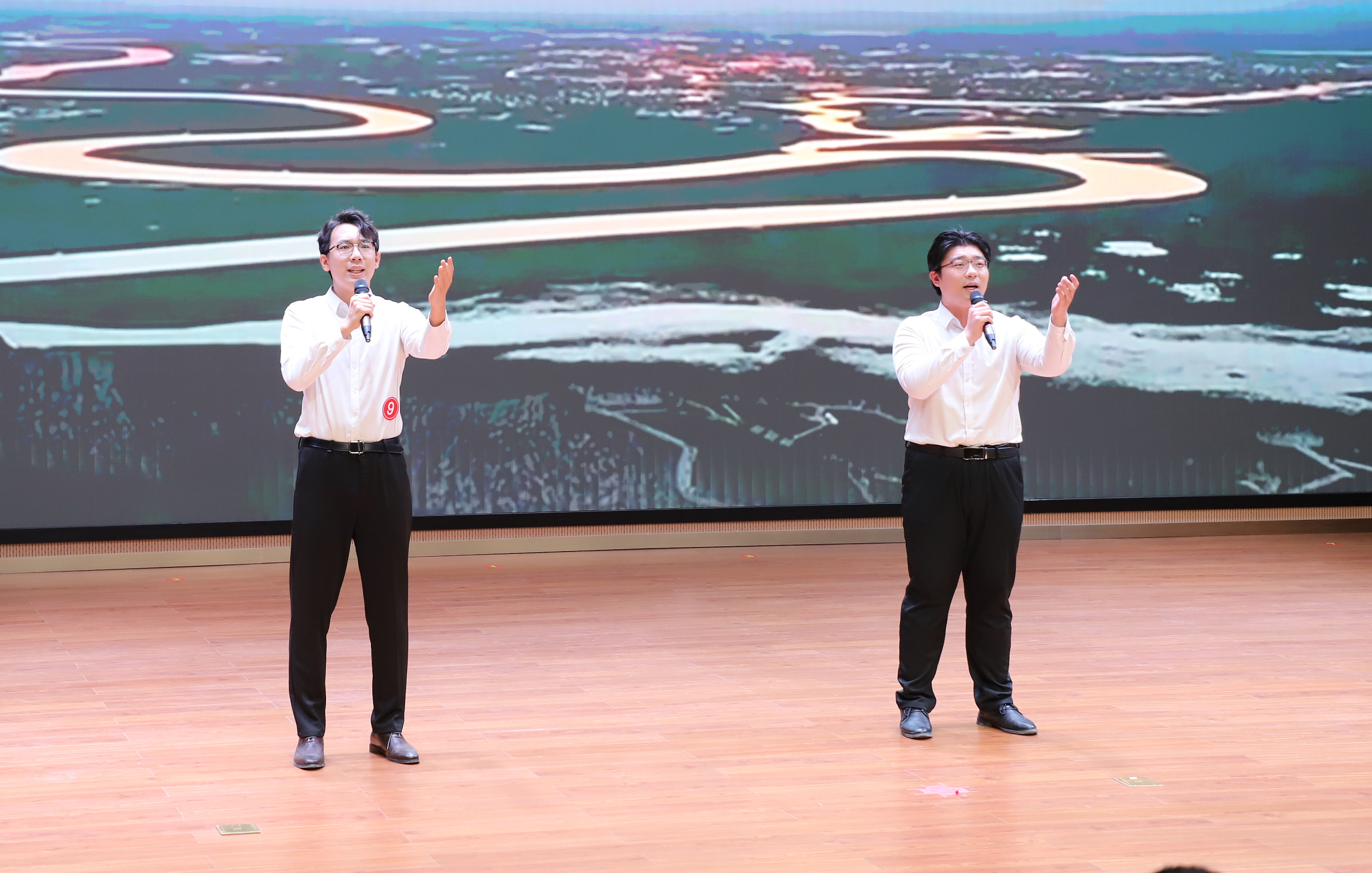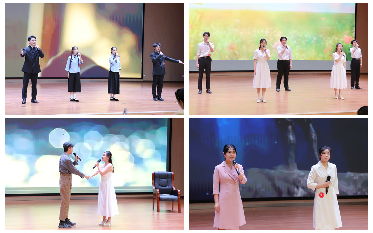 决赛现场,选手们用真挚的诵读,让百年信仰之声激荡人心,用经典的力量,照亮了青春的奋进征程。程秦川、胡政邦同学诵读的作品《大江颂》,以跨越时空的视角展望未来,呼唤着长江继续带着民族的希望与梦想,向着崭新的时代奔腾,奏响属于中华民族的奋进乐章。颜懿丰、孙莫云两位同学深情演绎《钢铁》,以双人互动为核心设计,通过声线交织、肢体对话与象征性场景调度,构建沉浸式叙事空间。杨娜娜、谢阳同学诵读的作品《吹号者》歌颂了为捍卫祖国而献身的战士们,寄托了奋进的意志和激情。李战、马小荣、许鑫、刘胤呈四位同学诵读的作品《觉醒年代》极具感染力,一句“先辈安心,山河无恙”饱含对先烈的缅怀,“请党放心,强国有我”展现出当代青年的壮志豪情与使命担当,传递出的强烈爱国情怀激励着每一位听众铭记历史,为实现中华民族伟大复兴而努力奋斗。