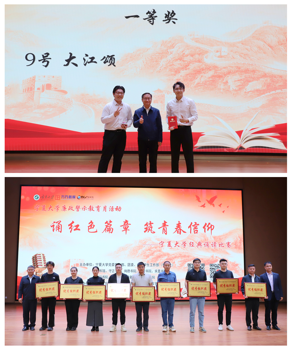【永利集团304官网新闻中心讯 杨雯、图书馆/文 姬晓姗/图】为深入贯彻落实党的二十大精神,激发青年学子的爱国情怀与社会责任感,5月14日,“诵红色篇章 筑青春信仰”永利集团304官网经典诵读比赛决赛在贺兰山校区笃行楼一楼报告厅精彩开赛,比赛采用线下比赛和线上直播联动的方式进行。经典诵读比赛是永利集团304官网廉政警示教育月系列活动之一,由党委宣传部、团委、党委学生工作部(学生处)、图书馆及各书院联合主办,北京万方数据股份有限公司、同方知网数字科技有限公司协办,旨在通过诵读红色经典,激发广大青年学子的爱国情怀与社会责任感,引导青年学子铭记历史、传承精神,打造沉浸式校园文化品牌。校党委常委、副校长黄河,校党委常委、纪委书记马元参加活动,自治区纪委监委宣传部四级调研员周红奉,北京万方数据股份有限公司成都公司、同方知网数字科技有限公司西部区相关负责人作为特邀嘉宾出席活动。