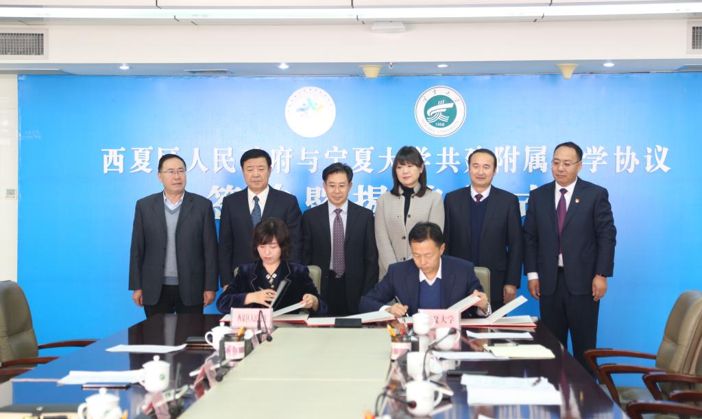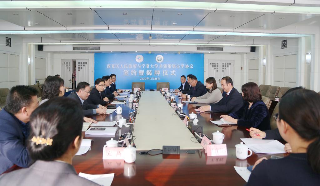 永利组织部、办公室、发展规划与学科建设处、附属中学,西夏区教育工委、教育局相关单位负责人,西夏区第九小学、第十一小学党支部书记、校长参加签约仪式和揭牌仪式。