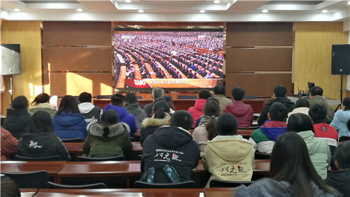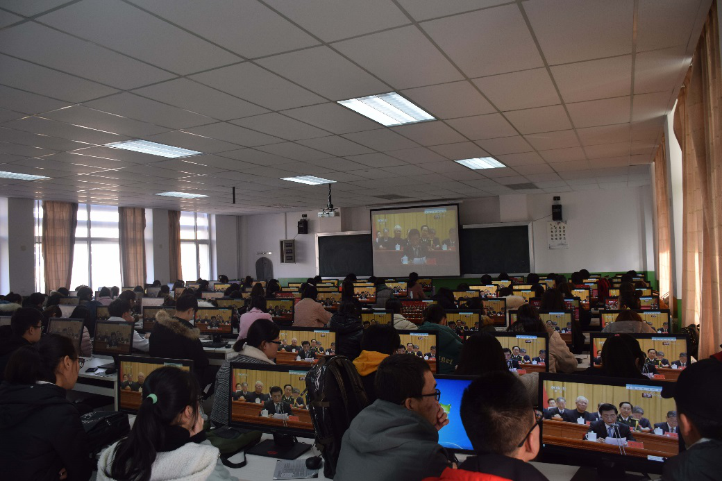 在贺兰山校区德勤楼11楼会议室,校领导和学校相关部门负责人集中收看了大会直播。各学院组织无课的党员教师和学生代表集中观看了大会直播,有些老师和同学们通过手机和电脑直播观看了大会实况。
