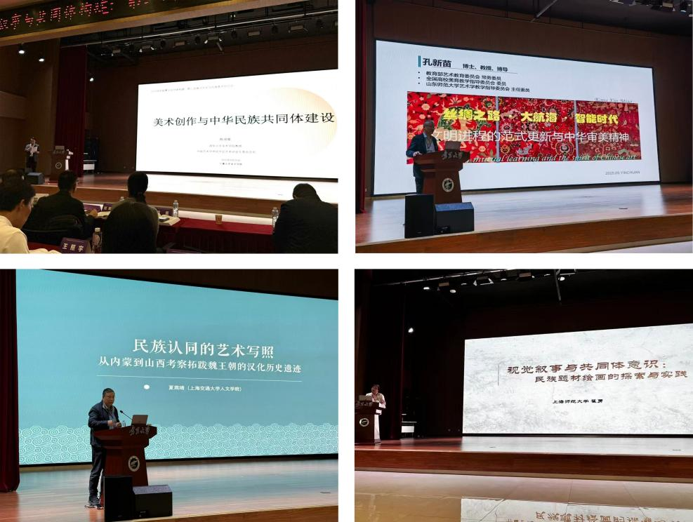 会议设置三个核心议题,包括“民族交融与文明互鉴视域下的丝绸之路艺术研究”“美术创作与中华民族共同体构建研究”“传统视觉符号与现代设计转译研究”等,覆盖美术理论、创作实践与文化研究多个维度。在分会场环节,学者们围绕主题展开热烈研讨,涌现出一批具有创新性与启发性的观点,现场交流深入,学术氛围浓厚。