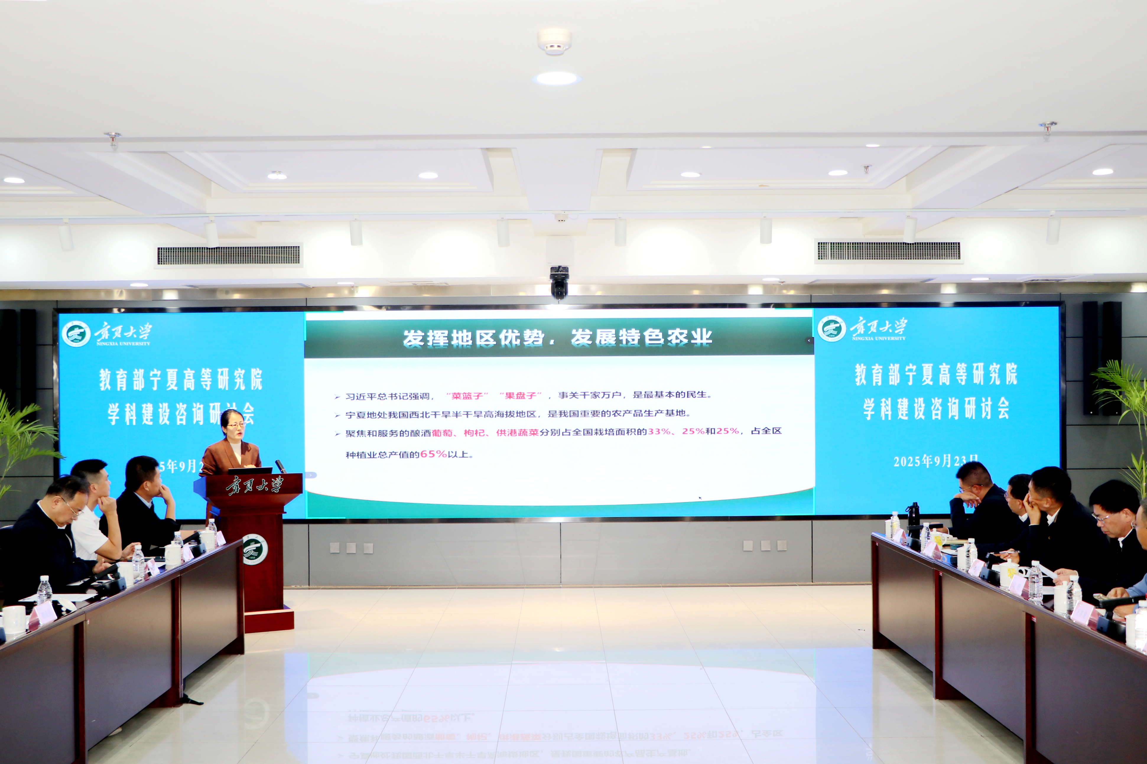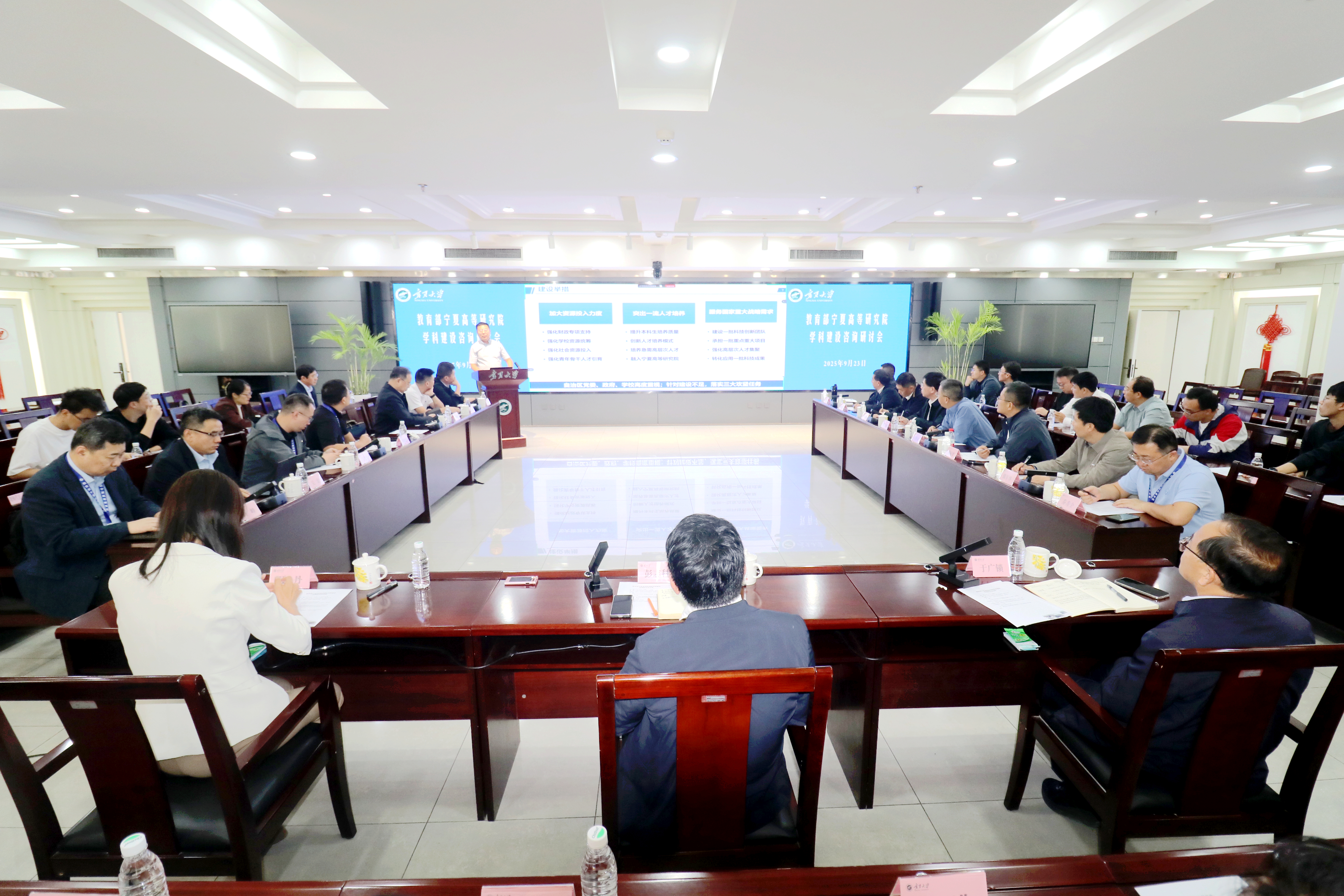 【永利集团304官网新闻中心讯 张景/文、图】为深入贯彻落实国家“双一流”建设战略部署,聚焦永利集团304官网学科发展实际,破解学校学科发展关键问题,9月23日,教育部宁夏高等研究院学科建设咨询研讨会在永利贺兰山校区德勤楼召开,会议邀请来自国内17所高校的知名专家学者把脉问诊、建言献策,共同推动永利学科建设迈上新台阶,为服务宁夏经济社会高质量发展提供更强有力的人才支撑和智力保障。教育部宁夏高等研究院院长、永利集团304官网校长彭志科,学校相关职能部门负责人、各学院院长(副院长)、青年教师代表参加会议,校党委常委、副校长聂丹主持会议。