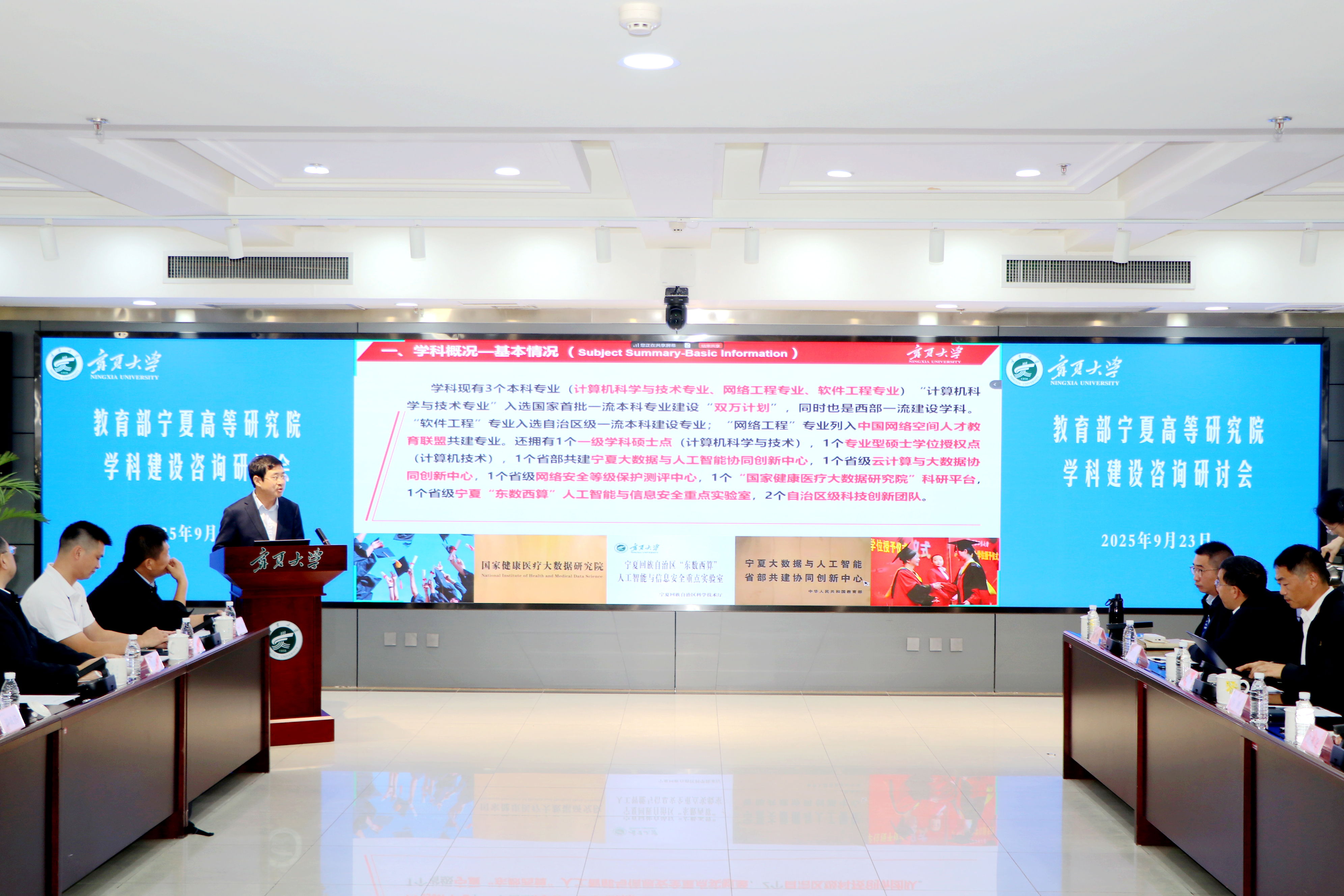 会上,化学化工学院院长张鹏飞汇报了“双一流”学科发展情况,系统梳理了学科发展历程与突破。材料与新能源学院院长夏明许通过线上方式介绍了学院在学科建设、科研攻关等方面的整体情况。信息工程学院院长冯锋围绕计算机科学与技术、网络工程、软件工程三大专业,介绍了学院学科在“东数西算”“人工智能 +”领域的布局。葡萄酒与园艺学院副院长张雪艳以宁夏葡萄、枸杞、冷凉蔬菜三大特色产业为切入点,汇报了园艺学科建设成果。