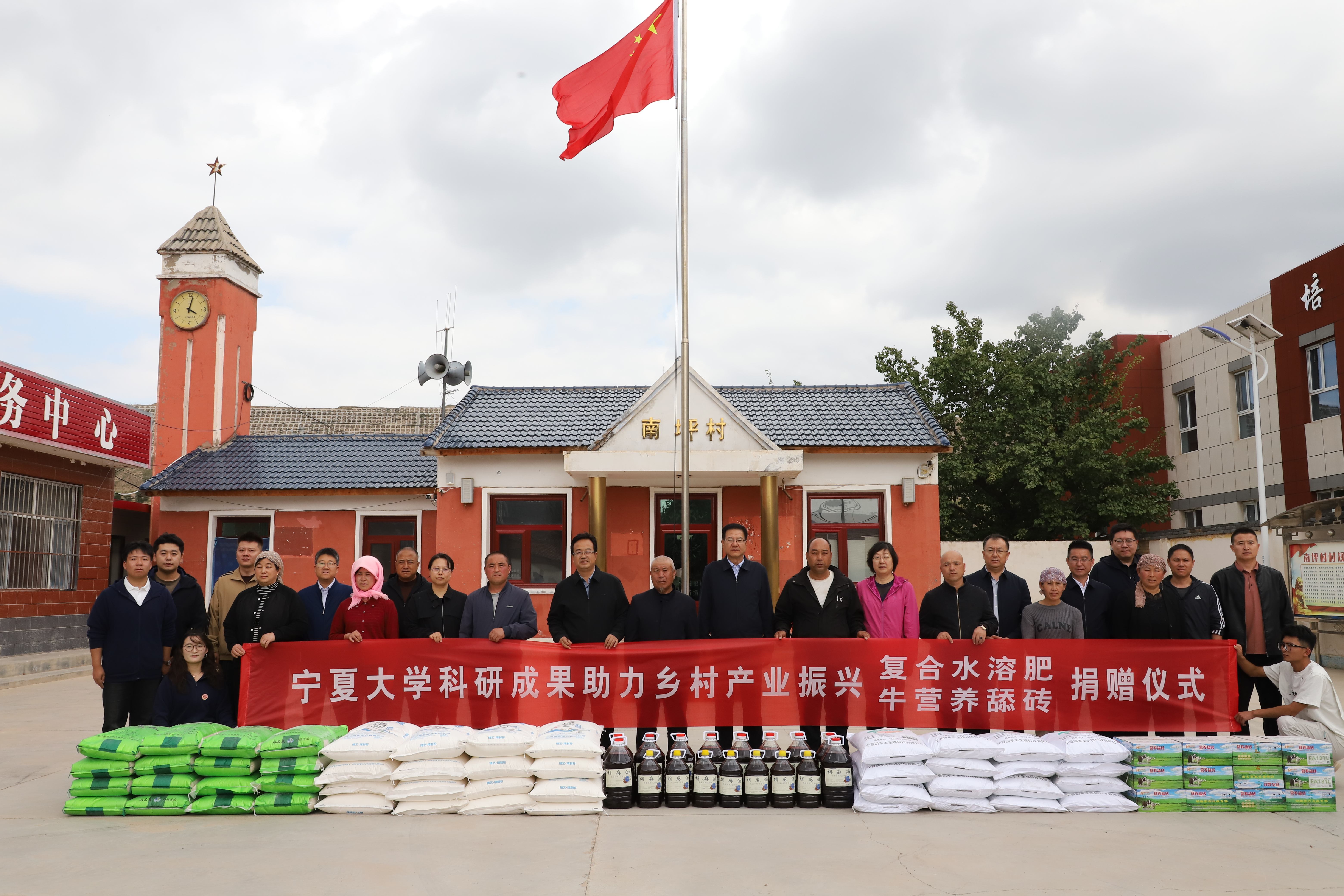【永利集团304官网新闻中心讯 王文娣/文、图】9月26日,校党委书记王宏伟,校党委副书记韩惠丽,校党委常委、组织部部长张永丽一行赴固原市原州区头营镇三和村、炭山乡南坪村开展调研慰问活动。调研期间亲切看望学校派驻当地的驻村工作队队员与研究生支教团成员,实地考察乡村振兴帮扶及支教工作进展,并向当地赠予永利科研成果复合水溶肥及牛营养舔砖。