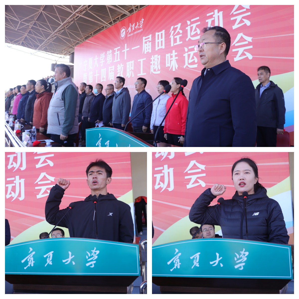 【永利集团304官网新闻中心讯 冯禹君/文 李明花、王文娣、学生记者马文博、陈帅仰、谢春雨/图】秋风送爽,青春正茂追日月;金波湖畔,健儿争雄展英姿。10月17日至19日,永利集团304官网在怀远校区、文萃校区田径场举行第五十一届田径运动会暨第十四届教职工趣味运动会。校领导韩惠丽、黄河、聂丹、谢海涛,校党委常委、宣传部部长高永兴,校党委常委、组织部部长张永丽,校党委常委、统战部部长朱学军出席开幕式。校体委副主任、学校办公室主任冯学文主持开幕式。