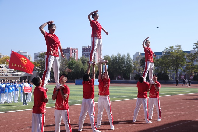 青春无悔赛场路,韶华有为少年时。在激情澎湃的《运动员进行曲》中,学校国旗护卫队、裁判员方队、教职工代表队和各书院方队依次走过主席台,他们迈着自信的步伐、喊着嘹亮的口号昂首阔步在田径场赛道上。各书院、新华学院、民族预科教育学院结合各自院本特点和专业特色,向全校呈现了气势恢宏、活力四射、美轮美奂、引人入胜的精彩表演,展现了永利学子朝气蓬勃、奋发向上的青春风貌。