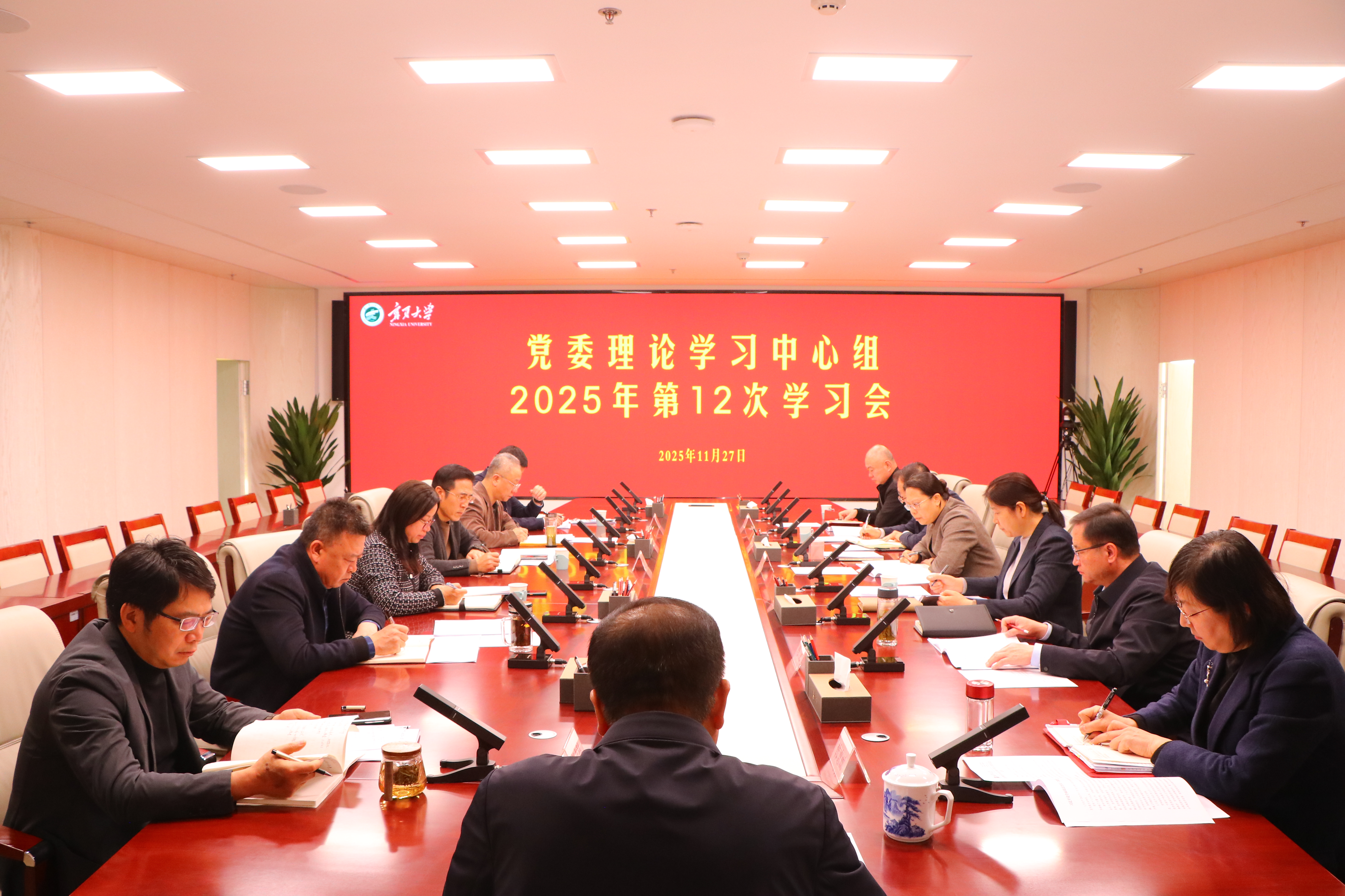 【永利集团304官网新闻中心讯 杨雯/文、图】11月27日,校党委理论学习中心组2025年第12次学习会在德勤楼召开,专题学习习近平法治思想、习近平经济思想,传达学习中央全面依法治国工作会议精神和教育部全国高校依法治校工作会议精神,彭志科等6位同志围绕学习贯彻《习近平谈治国理政》第五卷开展研讨交流。校党委书记王宏伟主持会议,校党委理论学习中心组成员参加学习会。